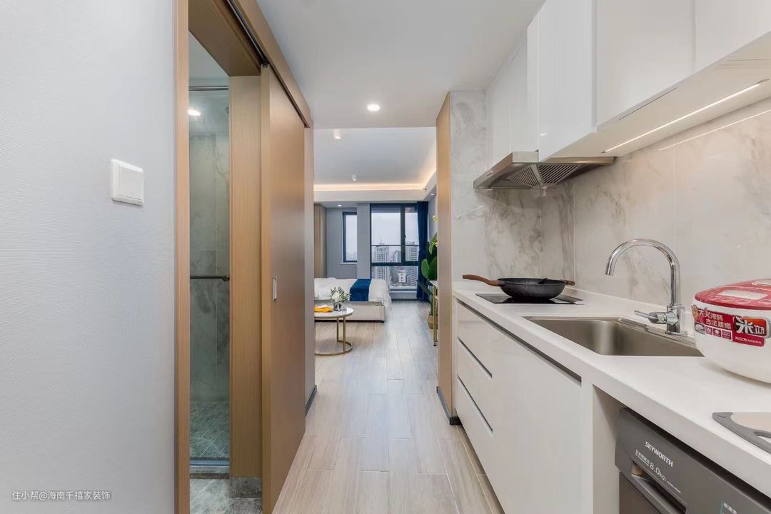 麻雀虽小,五脏俱全的单身公寓标准户型,整体装修也非常精致。