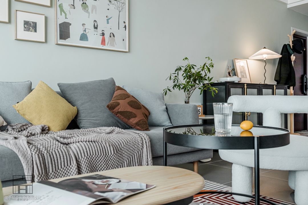 采用立邦“ 雨季 ”的墙漆 沙发旁边放置一小型云雾白边几,方便随手就能放置东西 放置了一个五斗柜进行东西收纳,上面还能放置一些小装饰品,提升整个空间的精致感 #墙漆#边几#五斗柜