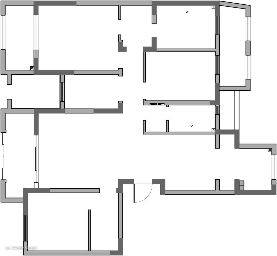 原始结构 1,进户空间没有得到很好的利用,空间浪费较多。 2,屋主对楼梯位置不满意,要改。 3,厨房相对较小,屋主已采购的洗碗机、蒸箱烤箱、冰箱、咖啡机等各种锅需要地方安置。 4,书房太小,满足不了屋主的需求。 5,次卧客卧空间都较小,没有衣柜的位置 6,收纳空间较少, 7,地下室的设计。