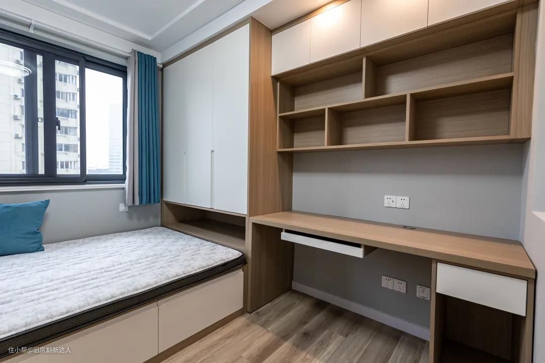 ▲改造后实景图 儿童房。整屋定制设计,大大提升了收纳空间。靠墙长条形书桌,不落地的设计,进一步减少卫生死角,让生活变得更加轻松自如。