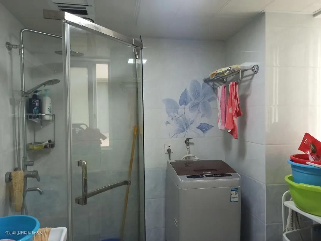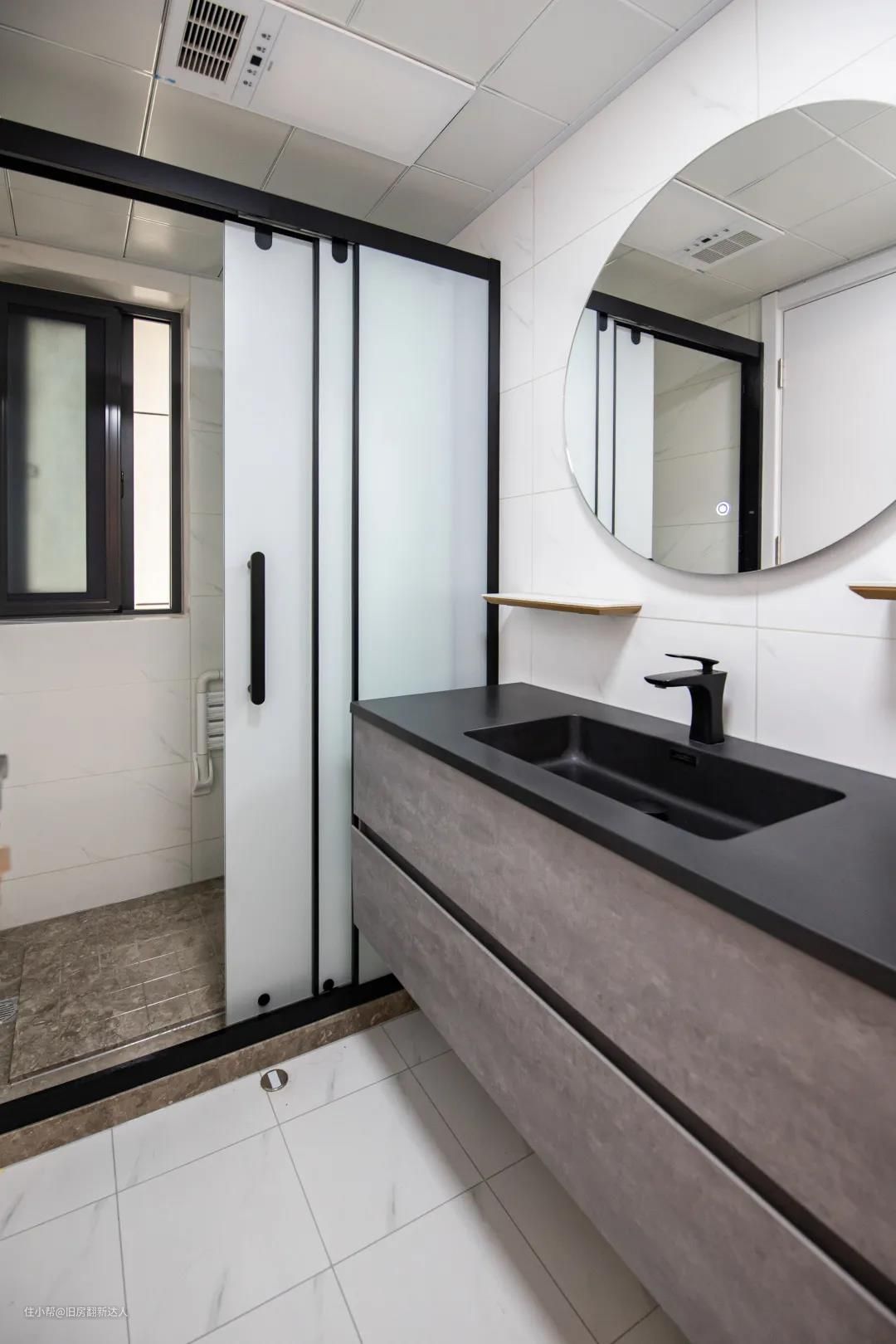 ▲改造后实景图 卫生间做了三分离,一进门是台盆区,圆形的防雾镜,增加了卫生间的美观度,浴室柜悬空式设计,不留卫生死角。