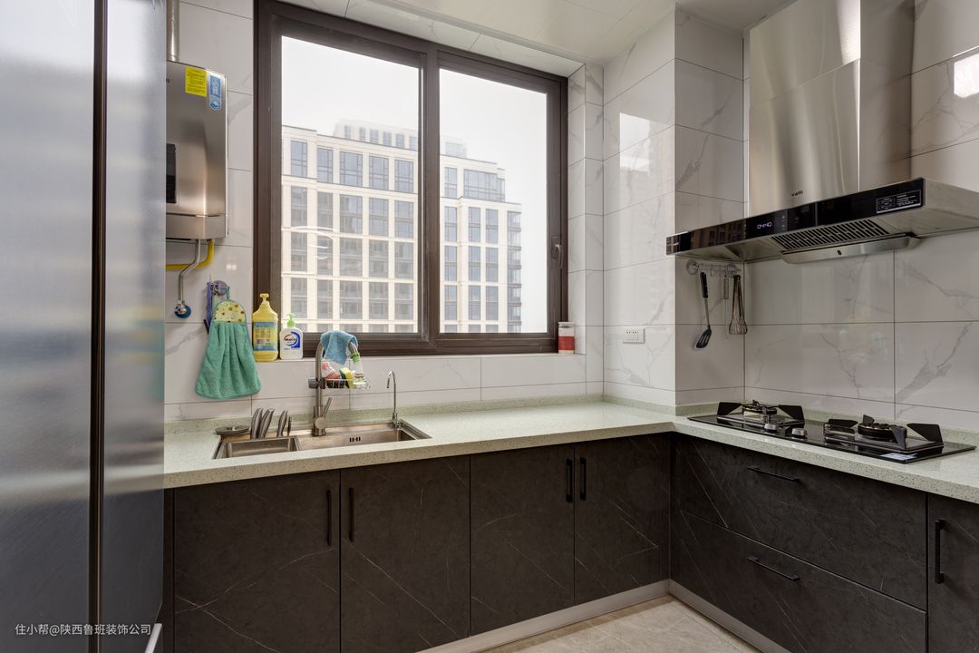 与厨房之间,用玻璃门隔断,可以让采光更好,也能节省空间,“买半个冰到恰到好处的西瓜,吹着温热的风,看着隐去的太阳,把天空渲染成一片惊艳的红,万物醺然安静” 由春入夏,四季变化,不过是赴一场人间烟火。