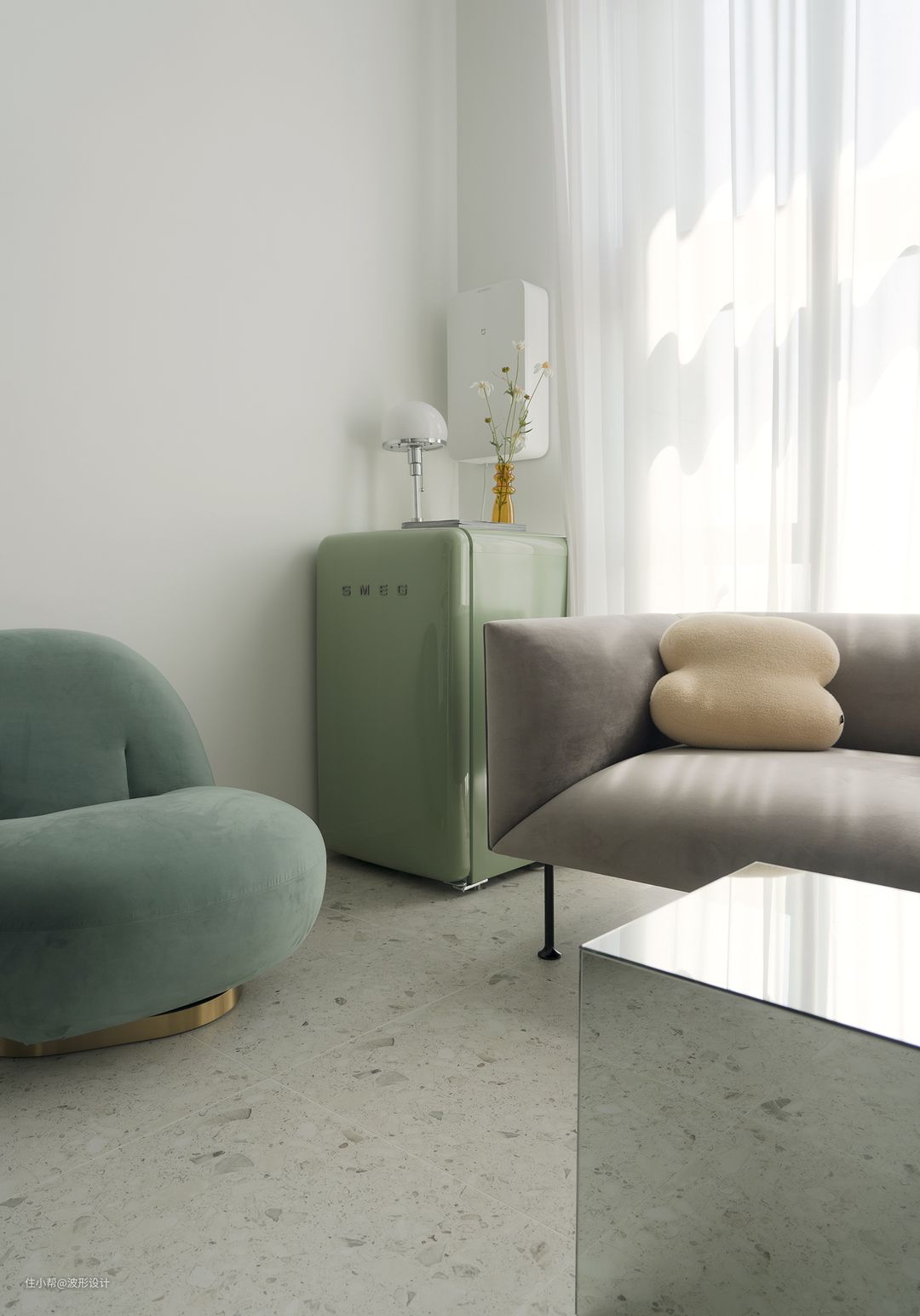 简约纯净的空间里,以复古绿和灰色组成,以一种清新简约的朴实气质呈现,整体空间显得高级不失平易近人的生活感。在这个屋主未来五年内会居住的家中,空间本质回归到居住者的内心意境,屋主在这里寻找到了久违的轻松、自由感。 舒适韵律诠释居住的无限可能,纯白意味着光明,希望,这代表了生活里最美好的那部分。