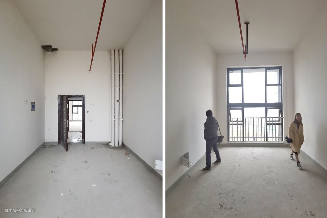 这个公寓建筑面积是23平,实用面积才15平,层高4米,拍了广角比较显大