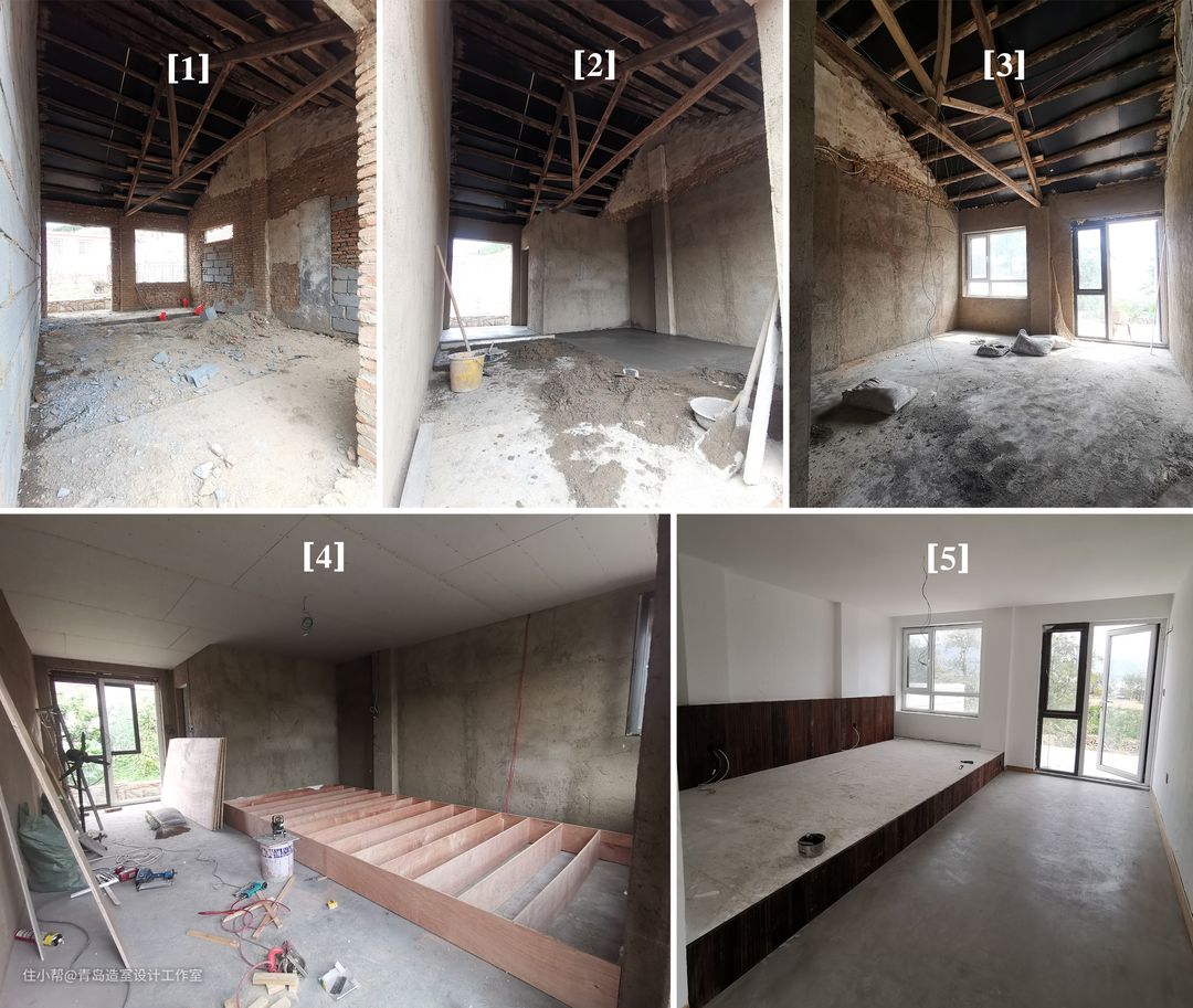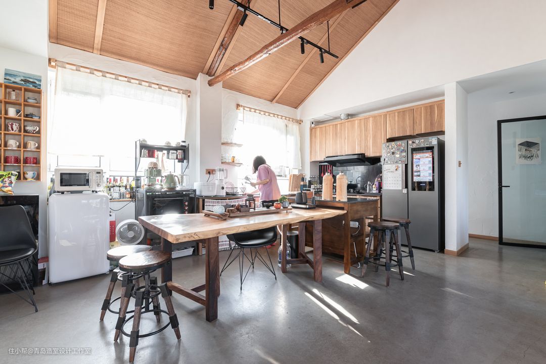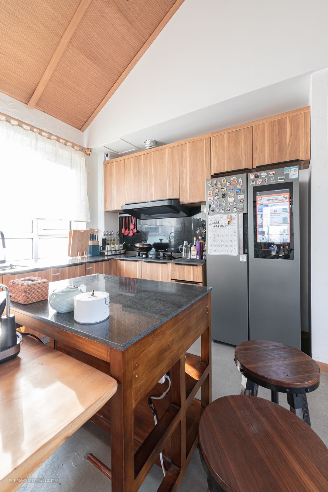 Q:装修过程花了多长时间? A:该总总共花费了一年的时间 Q:说说是什么给了你灵感,打造出现在这个作品的? A:是我们公司的一次团建。我们到朋友家租的一个村中的小四合院,晚上带着投影把电影打在小院的墙上,男生在旁边烤肉,我们女生就在聊家长里短。大家一起欣赏一部电影,一起睡大通铺。 早晨起来,闹钟还没响就被窗外的鸟叫声唤醒。走到屋顶平台,望着远处景色,呼吸着新鲜的空气。 发现在这样的环境下生活,身心都是舒展的。所以和卢设计一起,开始了乡村寻房造房故事。 Q:你对这套作品最满意的地方在哪里,为什么? A:从改造结束到现在我们已经入住一年时间。 在这段时间中,有很多朋友家人来做客,也有过夜的朋友。 收获最大也最满意的是,来到这里的人都能感受到在这里的幸福感,不管是孩子还是老人,经常有人发出感叹,这不就是我向往的生活么?就这么坐着太舒服了。 这就是我们完成这个改造,完成这个作品最成功的反馈。我们不仅为自己带来了幸福的生活体验,同样能够分享给别人我们的幸福。相信,通过我们的工作,我们能把这种幸福带给更多人。 Q:在整个装修设计期间遇到最大的挑战是什么? A:改造中最大的挑战肯定是原建筑的各种破败。曾经第一次来到这的时候,包括跟朋友说这个事情的时候。他们都不认为这个地方能够住人。 但是改造完成后,我们确实做到了。 Q:回头再看这套房子,设计当中有什么遗憾的地方吗? A:如果预算能够再多一些。想把所有的窗户换一遍。因为之前因为预算问题,而且考虑租赁原因。并没有全部使用一手的窗户,有很多现在出现了部分的老化。所以不管是什么样的装修,基础建设,隐性建设的费用一定不能节省。