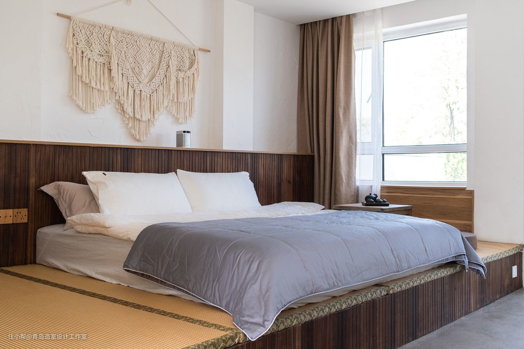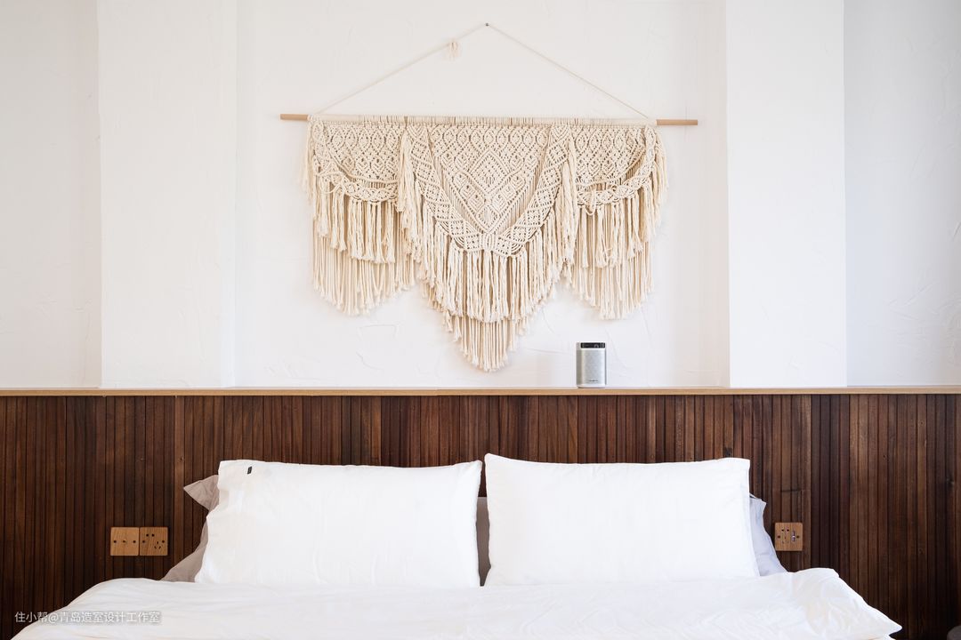 ⧠ 既然生活在这样美丽自然的环境下,卧室将是一天中最放松的时刻,所以抛去了所有繁杂的杂物。我们用最简单的方式搭建了一个大榻榻米床。用床垫区分出睡觉空间,其他的地方可以用来喝茶下棋,也可以用来摆放衣物。 #卧室 #榻榻米垫 #挂毯 #床品 #窗帘
