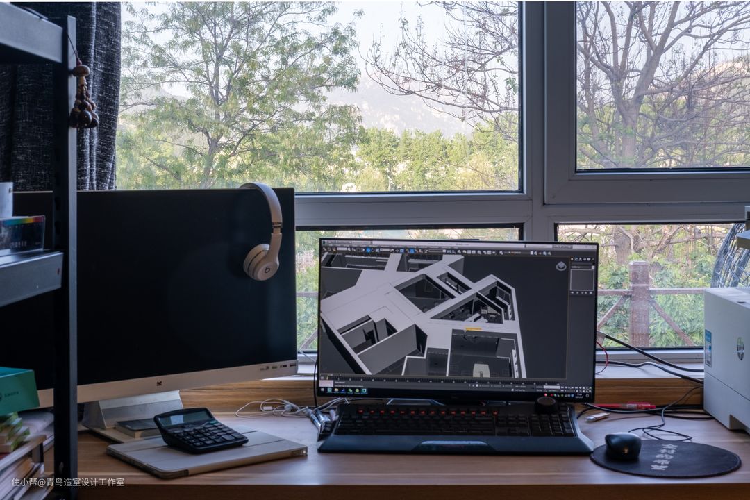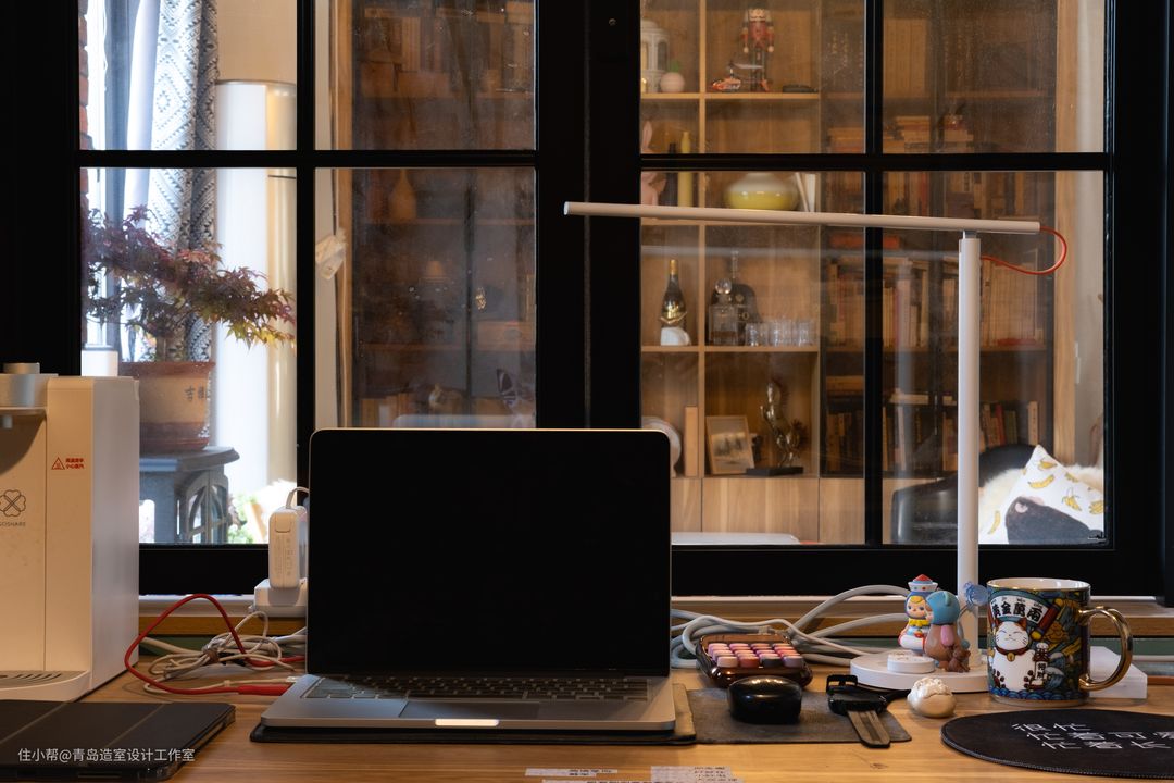 ⧠ #孙设计办公桌:我选择了靠室内的窗户。因为这边方便我纵观全局。白天我会打开挂帘,让客厅的光线洒进来。#工作台 #电脑桌