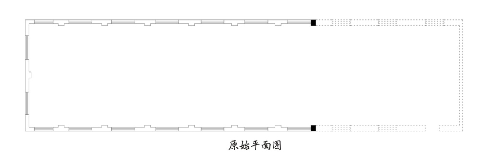 ⧠ 房屋原始雏型图 室内空无一物充分给了我们布局规划的发挥空间,但也一度因为想要实现的画面太多而苦恼,但是最终,我们充分考虑我们想要在空间内所安排的活动与生活场景,不断演练空间动线,最终得到了我们想要的结果。 实线部分是房屋的实体建筑空间,而前面的虚线部分是房东用砖加盖出来的位置。虚线部分的房顶还比后面的房屋的房顶要矮一些。这个位置最初我们相做成阳光花房,但是在实际的施工过程中用落地玻璃的方式替代,同样达到了我们想要的效果。