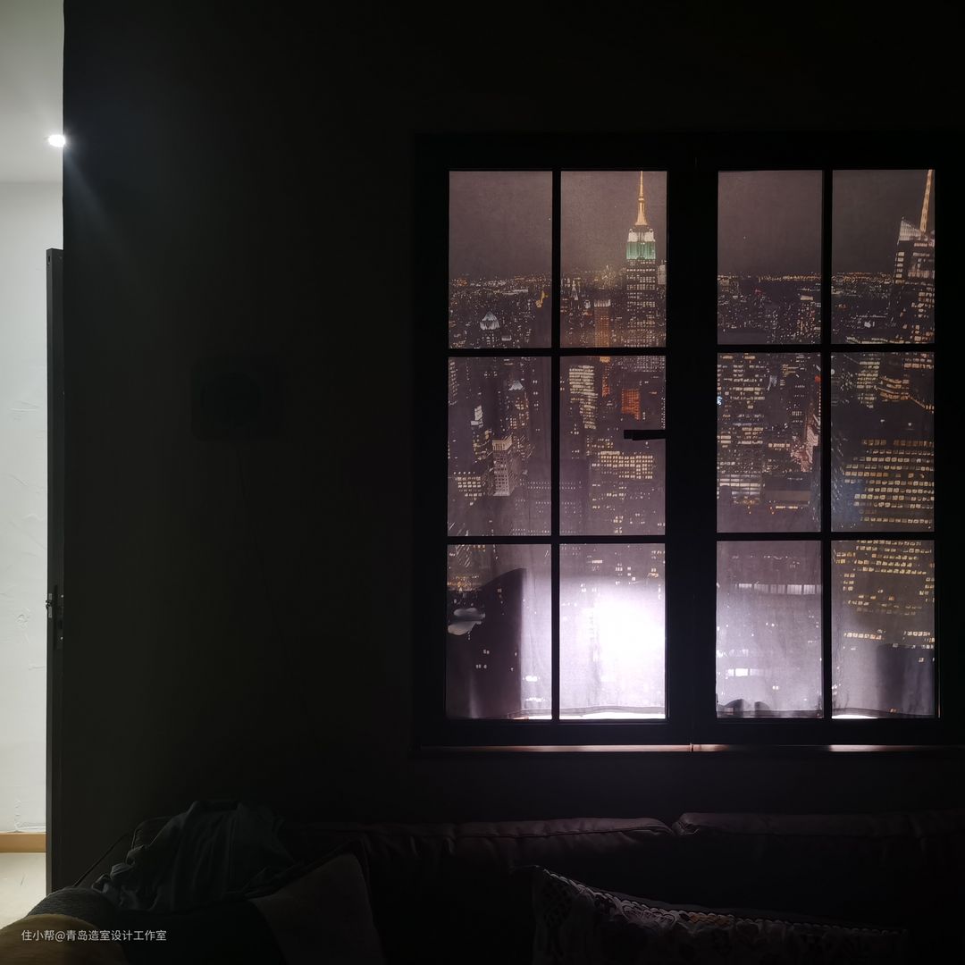 ⧠ 晚上或者有外人做客时候,我会把工作室做一个挂帘,可以起到遮挡作用,透过灯光,好像窗内有个城市的感觉,分外神秘。#客厅