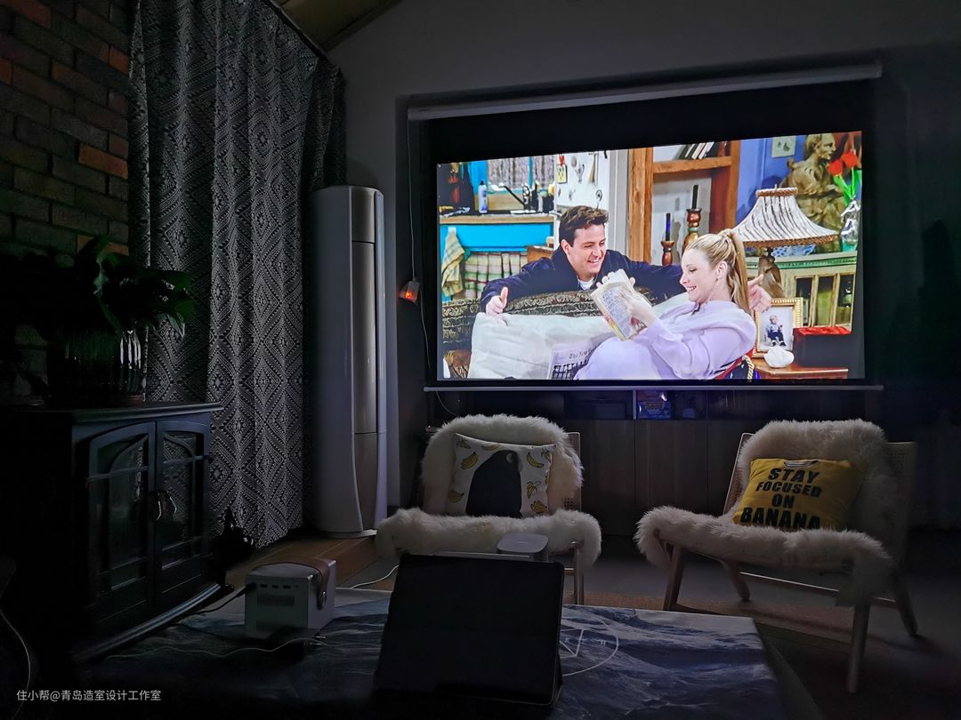 ⧠ 夜深人静,看集美剧,配上一杯热牛奶,更容易入眠。 相对电视来说,投影带来的感受幸福感会更强一些。但确实是存在光线问题的限制,要根据自己的观影习惯与时间要求来选择。 #投影 #客厅