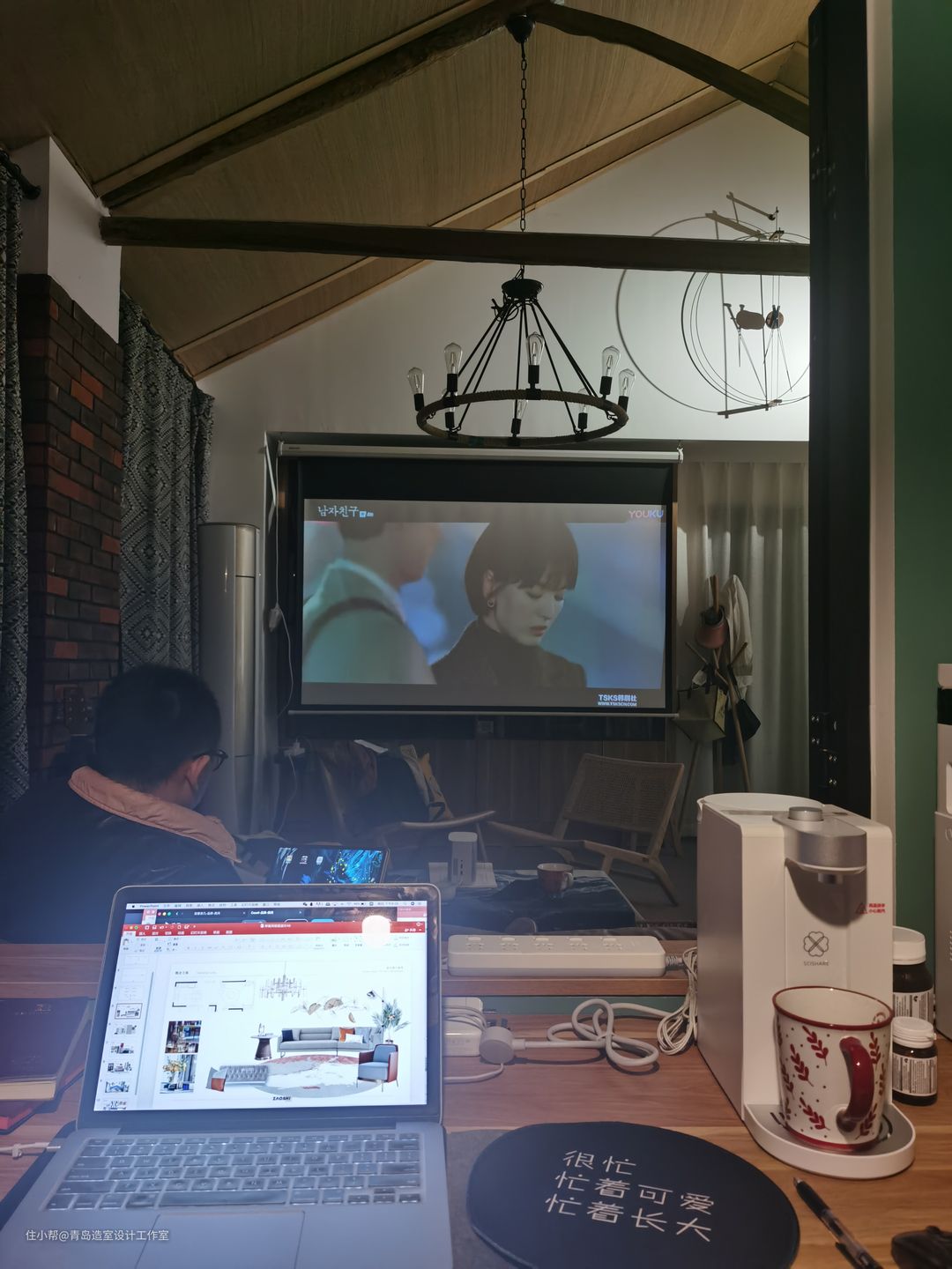 ⧠ 夜深人静,看集美剧,配上一杯热牛奶,更容易入眠。 相对电视来说,投影带来的感受幸福感会更强一些。但确实是存在光线问题的限制,要根据自己的观影习惯与时间要求来选择。 #投影 #客厅