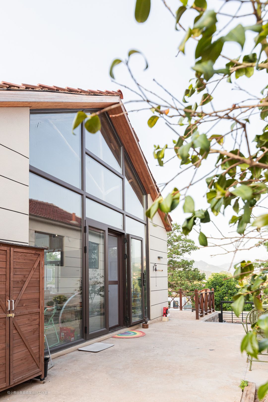 Q:装修过程花了多长时间? A:该总总共花费了一年的时间 Q:说说是什么给了你灵感,打造出现在这个作品的? A:是我们公司的一次团建。我们到朋友家租的一个村中的小四合院,晚上带着投影把电影打在小院的墙上,男生在旁边烤肉,我们女生就在聊家长里短。大家一起欣赏一部电影,一起睡大通铺。 早晨起来,闹钟还没响就被窗外的鸟叫声唤醒。走到屋顶平台,望着远处景色,呼吸着新鲜的空气。 发现在这样的环境下生活,身心都是舒展的。所以和卢设计一起,开始了乡村寻房造房故事。 Q:你对这套作品最满意的地方在哪里,为什么? A:从改造结束到现在我们已经入住一年时间。 在这段时间中,有很多朋友家人来做客,也有过夜的朋友。 收获最大也最满意的是,来到这里的人都能感受到在这里的幸福感,不管是孩子还是老人,经常有人发出感叹,这不就是我向往的生活么?就这么坐着太舒服了。 这就是我们完成这个改造,完成这个作品最成功的反馈。我们不仅为自己带来了幸福的生活体验,同样能够分享给别人我们的幸福。相信,通过我们的工作,我们能把这种幸福带给更多人。 Q:在整个装修设计期间遇到最大的挑战是什么? A:改造中最大的挑战肯定是原建筑的各种破败。曾经第一次来到这的时候,包括跟朋友说这个事情的时候。他们都不认为这个地方能够住人。 但是改造完成后,我们确实做到了。 Q:回头再看这套房子,设计当中有什么遗憾的地方吗? A:如果预算能够再多一些。想把所有的窗户换一遍。因为之前因为预算问题,而且考虑租赁原因。并没有全部使用一手的窗户,有很多现在出现了部分的老化。所以不管是什么样的装修,基础建设,隐性建设的费用一定不能节省。