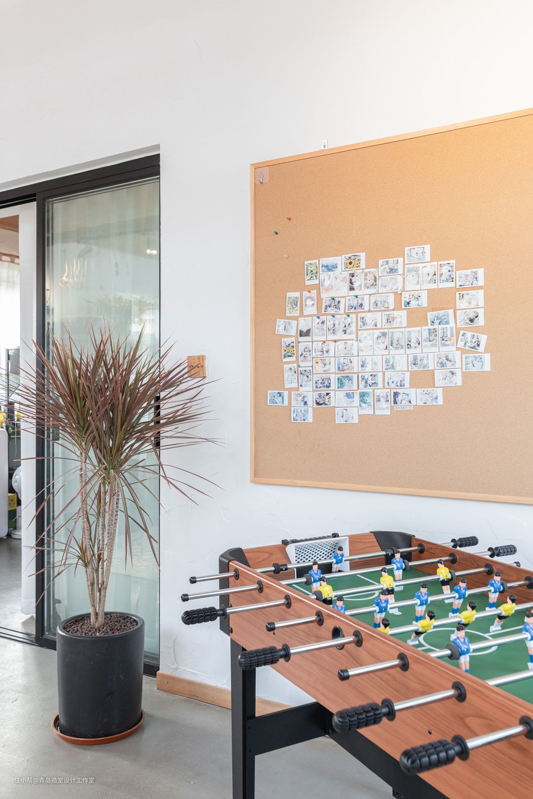 ⧠ 千年木造型很适合用来装饰空间,而且很好养护,在风水上还有步步高升的美好寓意。所以将它放在入门第一眼能看到的位置。 #千年木 #桌上足球 #照片墙