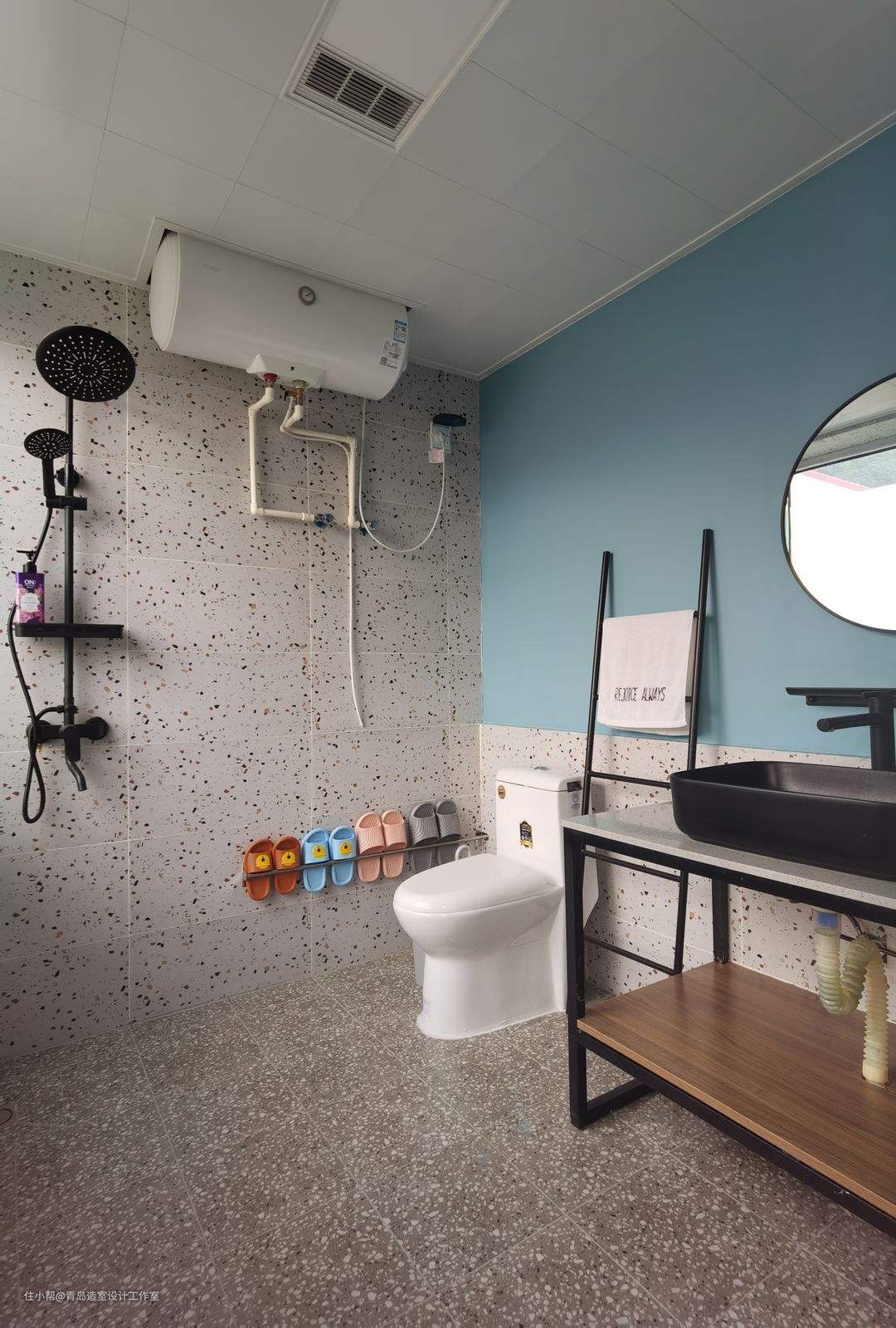 ⧠ 洗手区采用贴半砖的形式,上半部分墙体刷蓝色防水乳胶漆。#卫生间 #洗手台