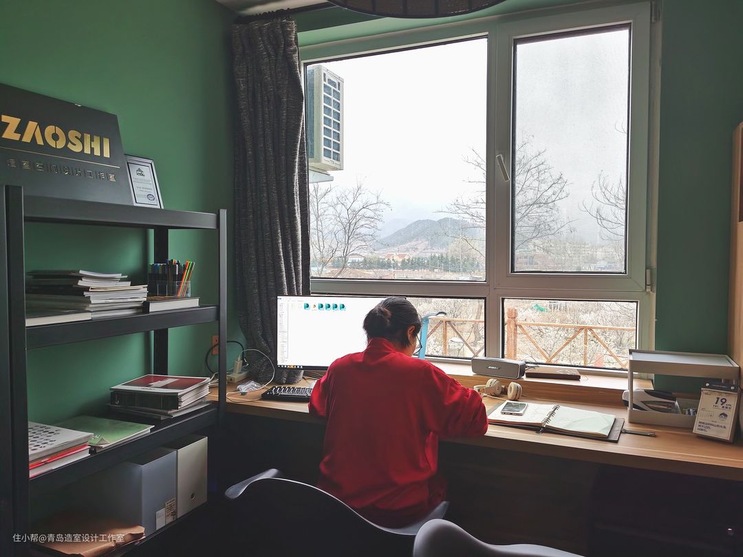 ⧠ #孙设计办公桌:我选择了靠室内的窗户。因为这边方便我纵观全局。白天我会打开挂帘,让客厅的光线洒进来。#工作台 #电脑桌