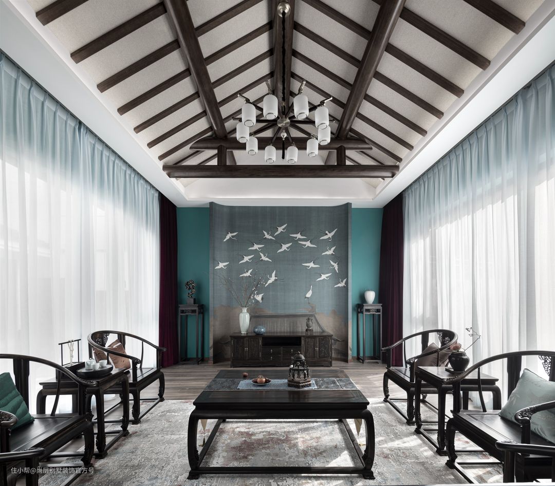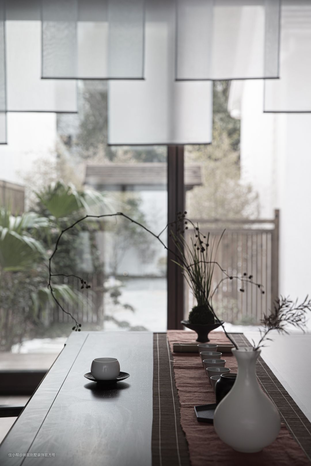 装修过程花了多长时间? 225天 说说是什么给了你灵感,打造出现在这个作品的? 遥远的桃源梦,已在国人的心中萦绕了上千年。故事里的桃源虽不可追,故事外的我们却依然能构建出属于自己的田园乐居。何为理想生活?无非是将所有挚爱囊括其中。依循喜好所打造的生活,承载着为人处世的道理,这个未来的居所里,这股对于人、天地、自我的精神认知,将长久流传下去。 你对这套作品最满意的地方在哪里,为什么? 理想生活是将挚爱囊括其中。与大多数90后男孩不同,业主不追求潮流文化,反而对东方文化更加情有独钟;与金融学的理性逻辑不同,看重浪漫、柔美的表达,希望整个空间形神兼备。他希望追求的生命是有厚度和宽度,能外延到比俗世更高的层面。 对平面布局做了哪些优化改动,为什么? 客厅、妈妈的卧室都保留了建筑结构的人字形顶,以榫卯构筑,深色的木质框架沉稳而庄重。餐厨区域融合了传统东方与现代简约,这是为了满足家里人不同的生活习惯。