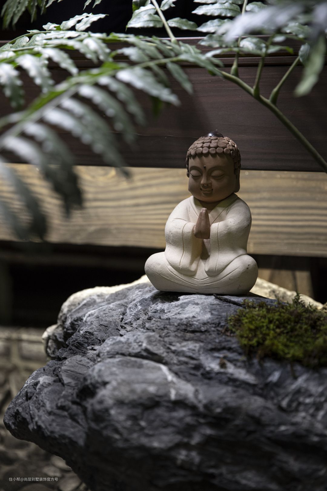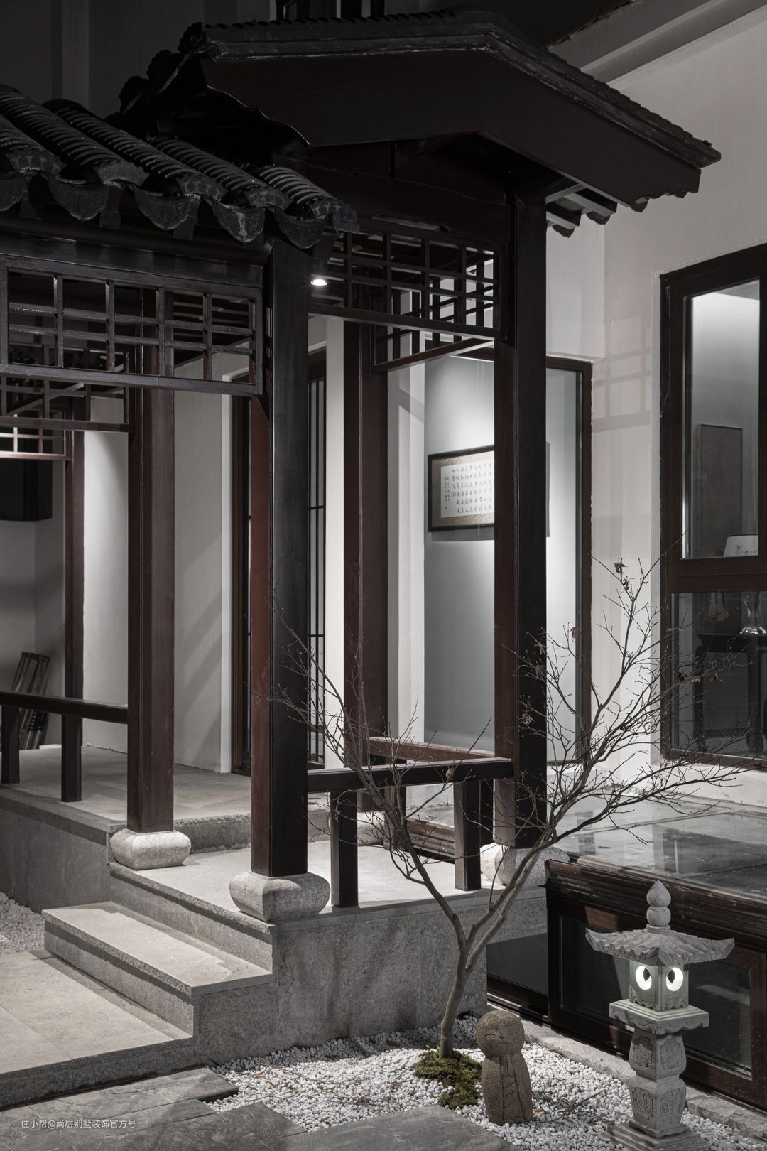 根据中式风格,庭院是长廊+绿植、假山,打造成一份显闲情雅致的多重感官。 让身处喧嚣的人们多了一处灵魂居所,一个可以放下羁绊、回归自我的地方。