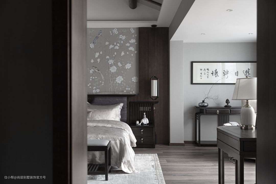 次卧的空间既现代居室的时尚又兼顾东方风情的细节,中式家具的架子床不仅大气,还有别样的秀丽。