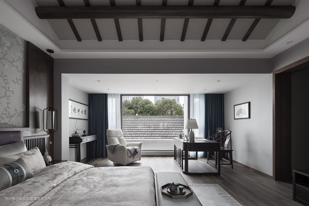心之归处,是生活中最暖融融宽畅的向往。卧室以不同材质丰富细节,随处都与东方风韵相呼应。不管是床头花鸟的背景,还是阳台的木桌,灯具,屋顶的房梁设计,都与东方风格相融合。