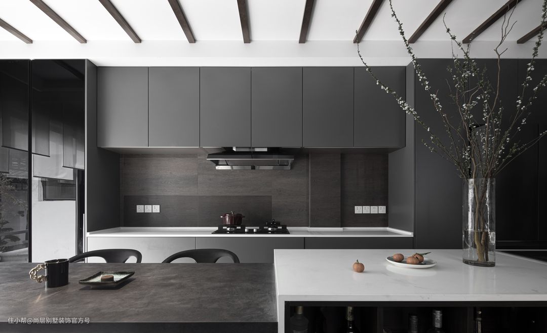 装修过程花了多长时间? 225天 说说是什么给了你灵感,打造出现在这个作品的? 遥远的桃源梦,已在国人的心中萦绕了上千年。故事里的桃源虽不可追,故事外的我们却依然能构建出属于自己的田园乐居。何为理想生活?无非是将所有挚爱囊括其中。依循喜好所打造的生活,承载着为人处世的道理,这个未来的居所里,这股对于人、天地、自我的精神认知,将长久流传下去。 你对这套作品最满意的地方在哪里,为什么? 理想生活是将挚爱囊括其中。与大多数90后男孩不同,业主不追求潮流文化,反而对东方文化更加情有独钟;与金融学的理性逻辑不同,看重浪漫、柔美的表达,希望整个空间形神兼备。他希望追求的生命是有厚度和宽度,能外延到比俗世更高的层面。 对平面布局做了哪些优化改动,为什么? 客厅、妈妈的卧室都保留了建筑结构的人字形顶,以榫卯构筑,深色的木质框架沉稳而庄重。餐厨区域融合了传统东方与现代简约,这是为了满足家里人不同的生活习惯。