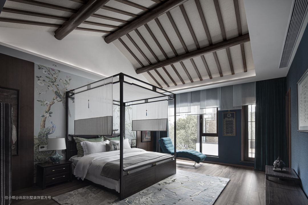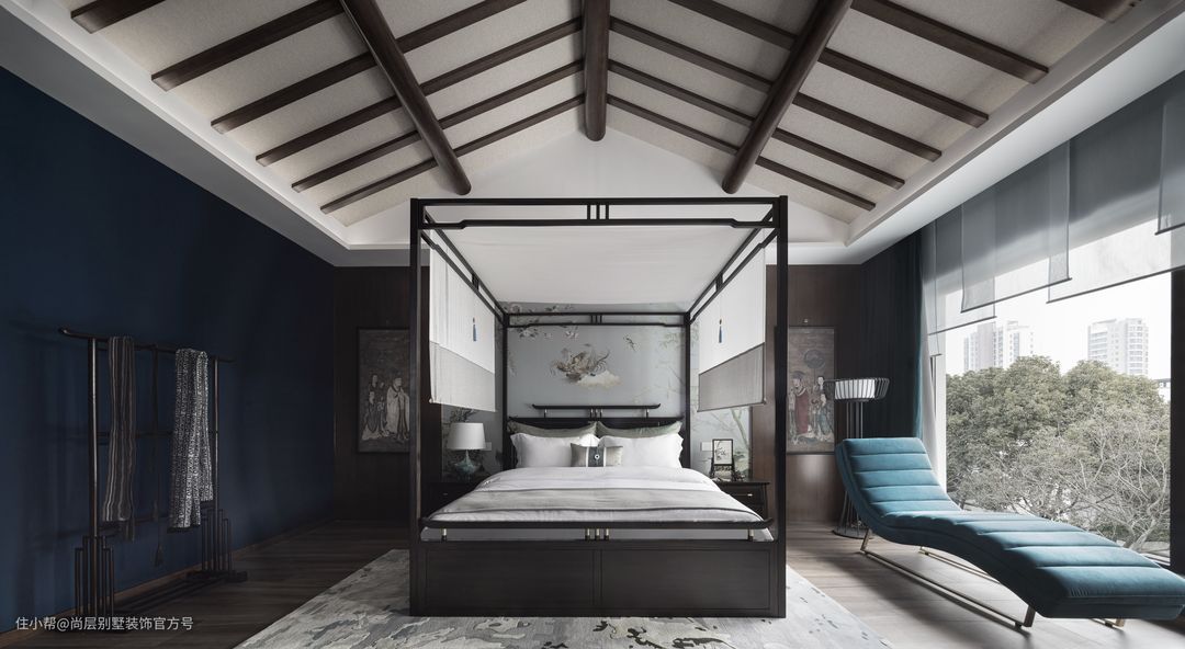 次卧的空间既现代居室的时尚又兼顾东方风情的细节,中式家具的架子床不仅大气,还有别样的秀丽。