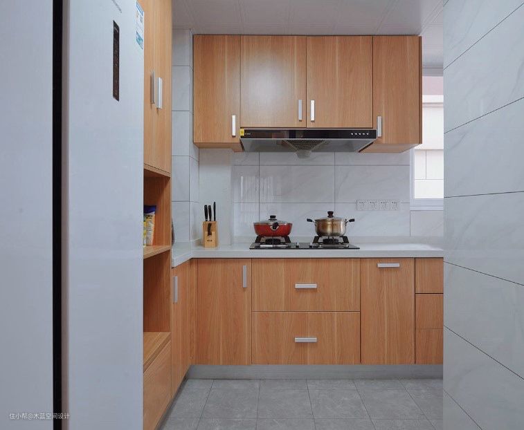 墙地面统一用300*600瓷砖铺贴,柜子沿用餐边柜板材。
