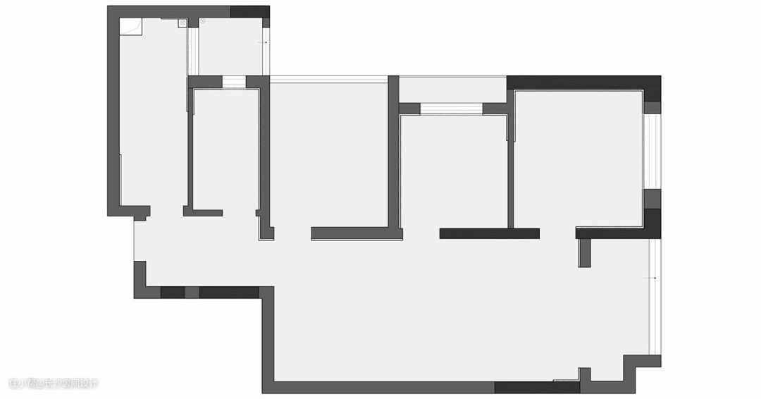 原始户型图 这套户型套内面积比较小,让每个空间都比较局促,我们做了很多方案,改动也比较大,但是屋主还是希望保留三房,格局就没有进行改动。