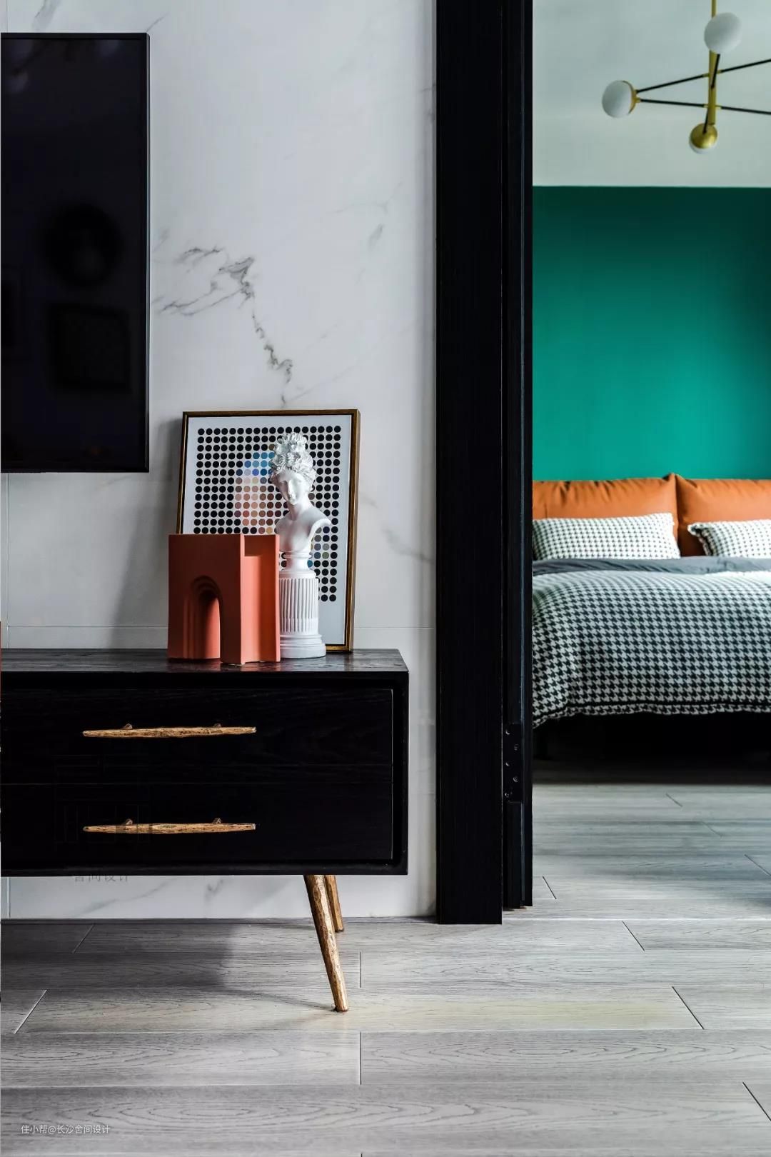 小tips:外面的装饰画与卧室的被套相呼应,客厅地板延伸到主卧,整体空间通透增加视野。#主卧#装饰画
