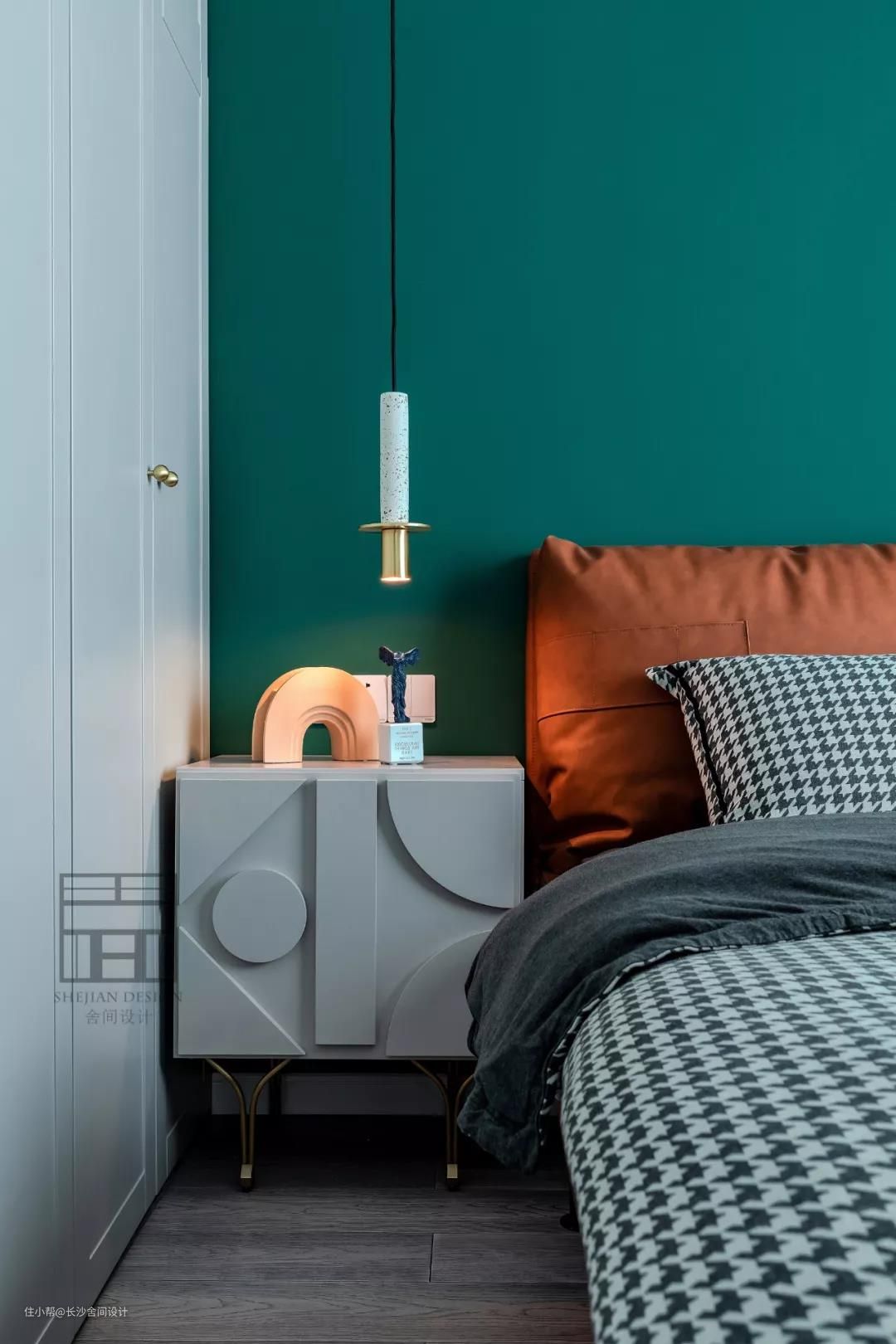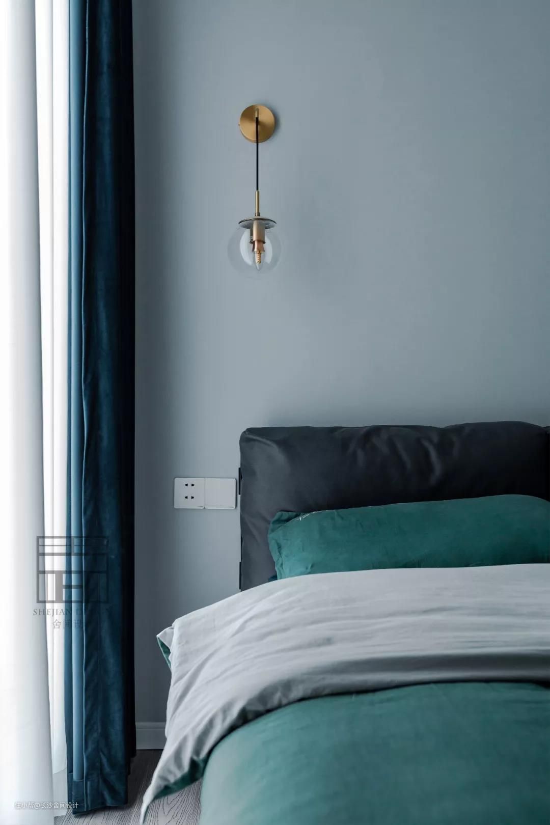 次卧的色彩清新干净。绿色与黄铜真是百看不厌的搭档。#次卧#灯