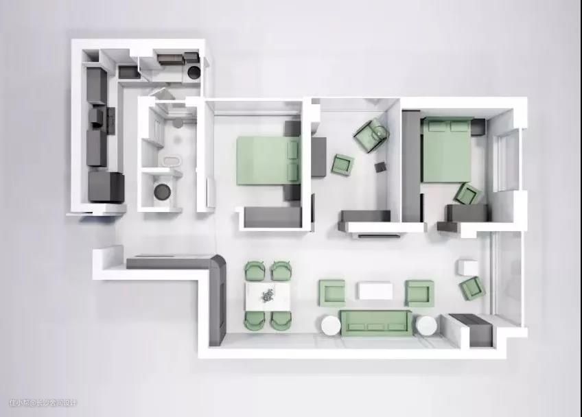 当人们的审美开始提高,能接受的事物也就随之增加。 这个家的元素复古且个性,屋主是90后女生。 她是希望能够保留三房,前期是屋主一个人居住,后期屋主妈妈退休后会搬过来一起居住。 她希望家里偏冷调,父母虽然不太常住在一起,可接受方案还是有点困难,通过多次沟通和反复改稿渐渐落实方案,最终落地很满意也是通过互相理解的成果。