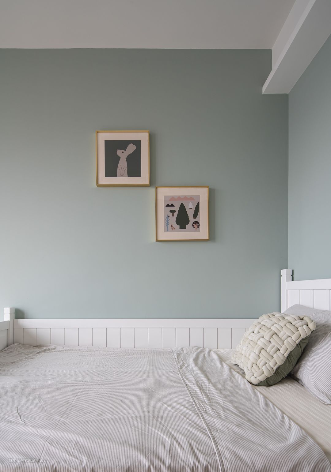 小女儿房以浅青色为主,用色上更加大胆鲜明,异于大女儿房的风格,似乎也能从中看出两个小女孩性格上的不同,一个文静内敛,一个活泼可爱~考虑到小朋友未来成长的可能性,床具都是可随时替换的,衣柜及书桌则是固定搭配,满足日常需求。书桌上方另设置了小型书架,将未来几年成长的可能性提前预留好~