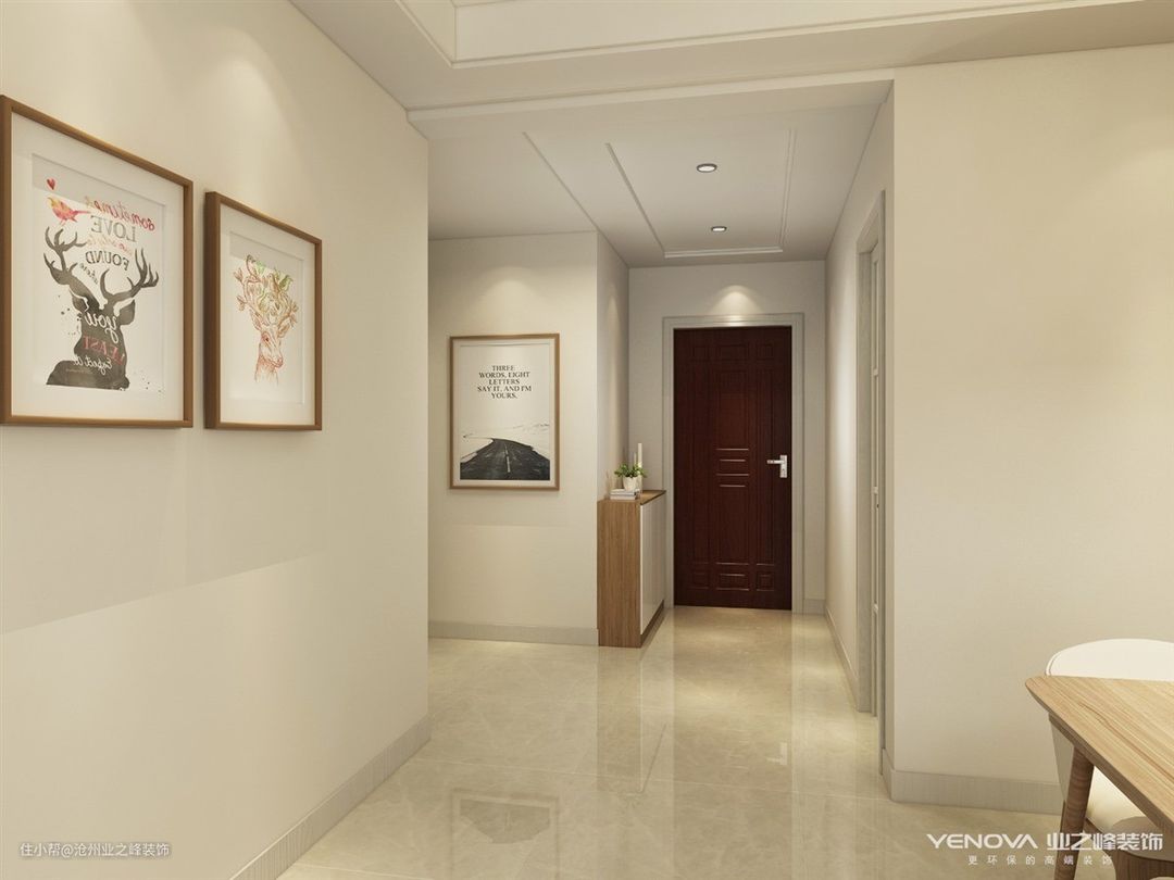 本案整体采用浅色的壁布和原木家具相互结合搭配,整体色彩明亮通透,搭配暖色的灯光,让家居生活更加舒适温馨。