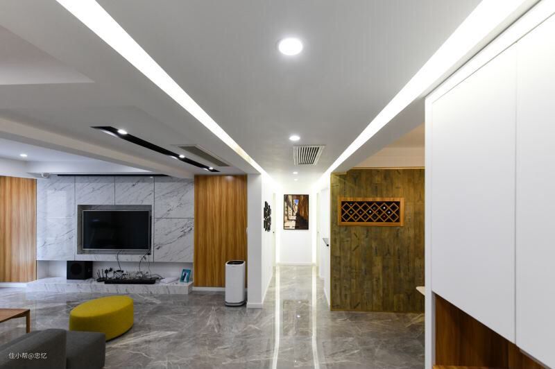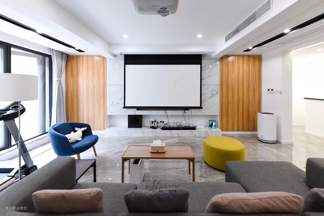 客厅做了敞开式书房和客厅实发做映衬,拿到了之前的墙体,这样做客厅空间空大还让整个空间变得更加灵动。 ★极简风格里面常用的无主灯设计,再配上投影,感觉一下子空间就变得高级起来 #敞开式书房