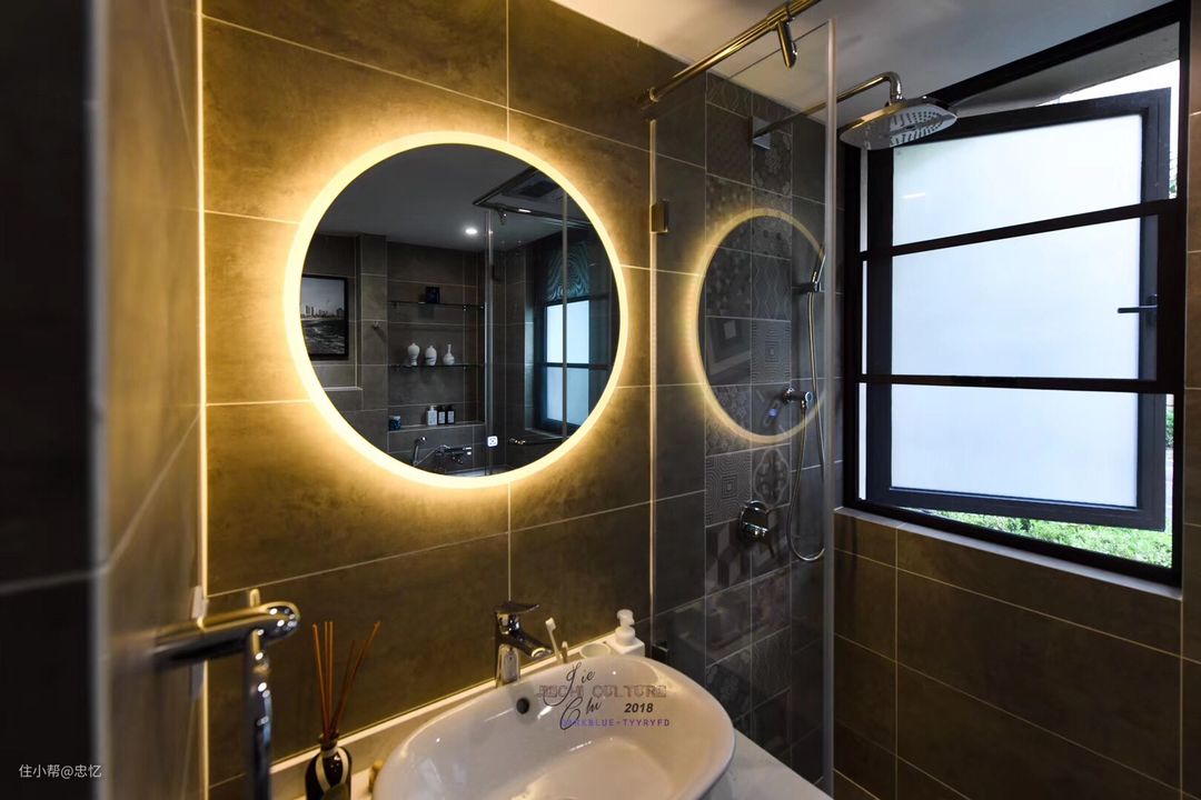 因为主卧占用了一点卫生间的空间,所以这边的台面是定制的尺寸,选择一款颜值很高,圆镜防雾发光led镜,它有三个色温根据场景来切换