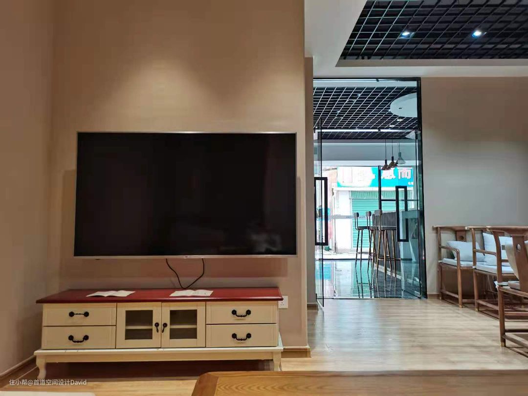 改造后营造出观影用得休闲空间,入门位置改动,做大面透明玻璃延伸至顶部,增加采光及包容感