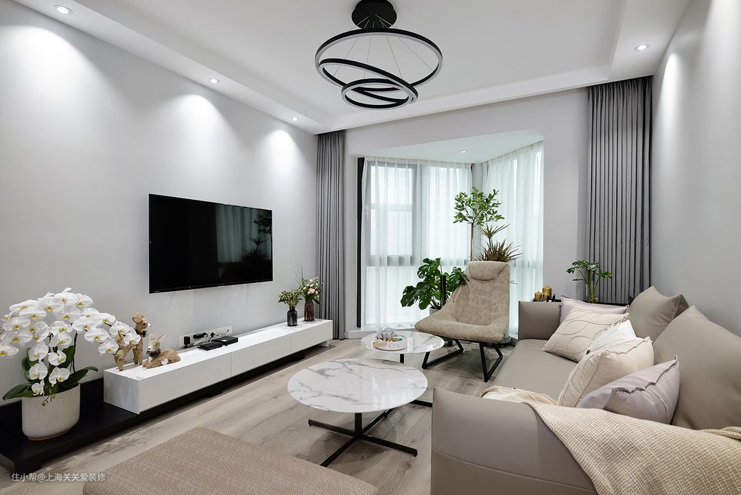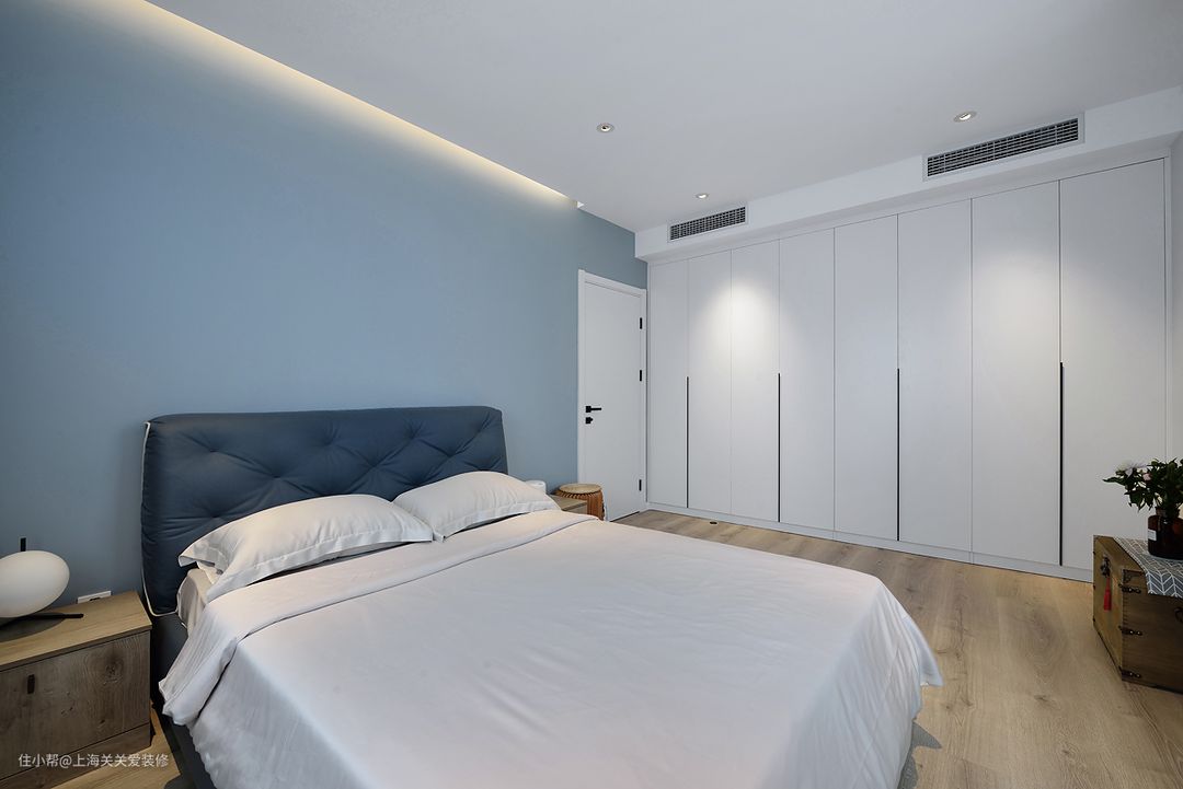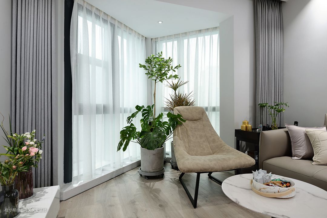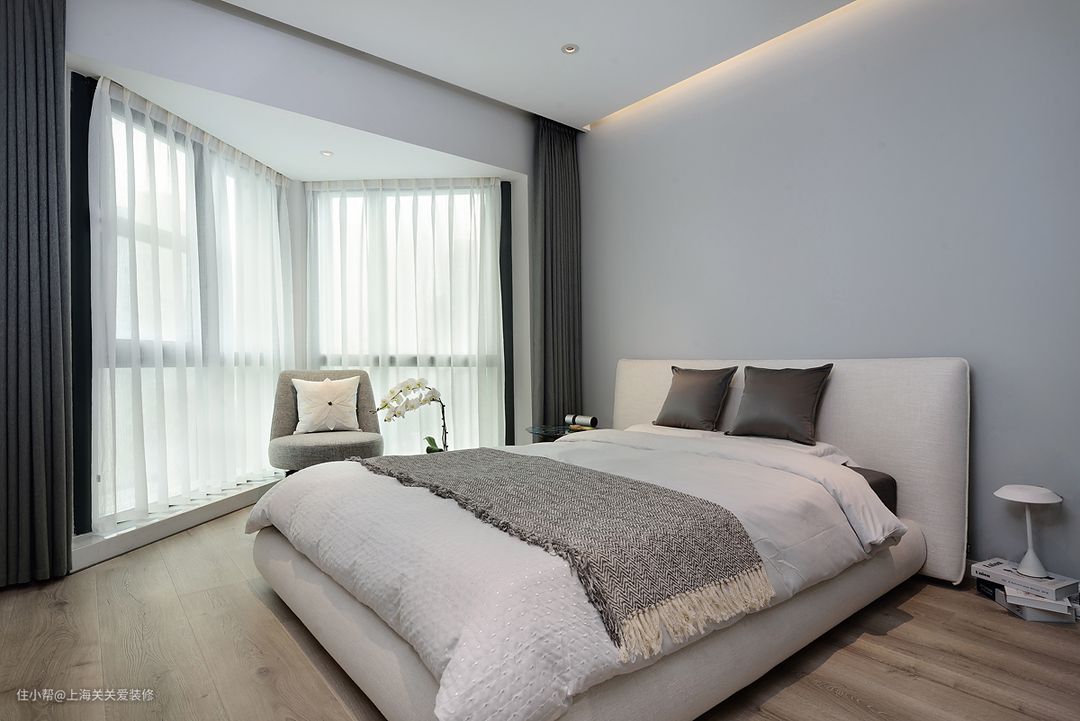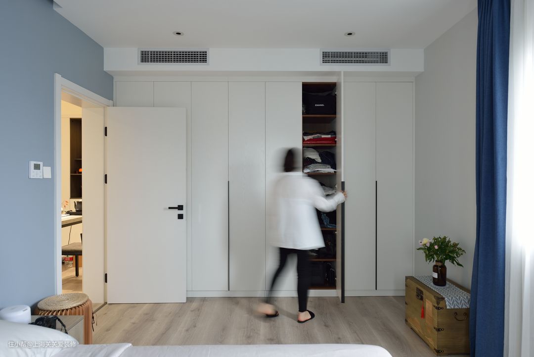 次卧则采用三门联动的移门增加室内的采光,如果需要充当客房,在移门后也有窗帘可以拉起,私密性也不会受到影响。