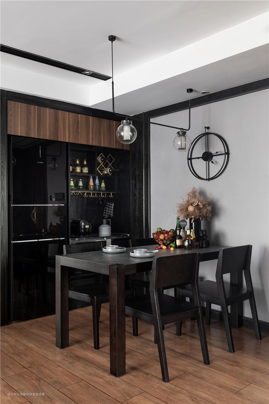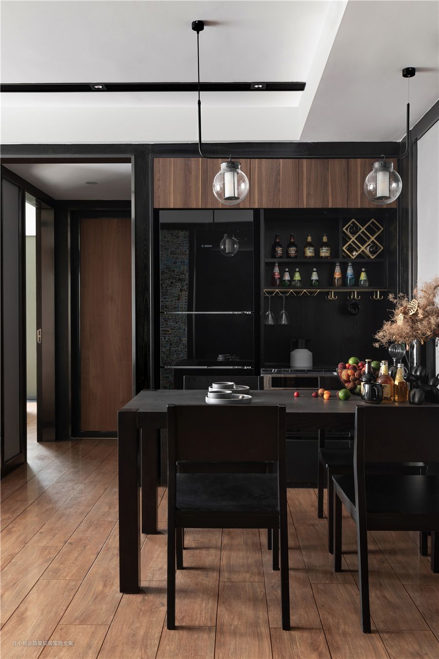 黑色的木材餐桌椅,为空间提供便捷舒适的饮食空间,餐厅位于厨房附近,饮食时方便。