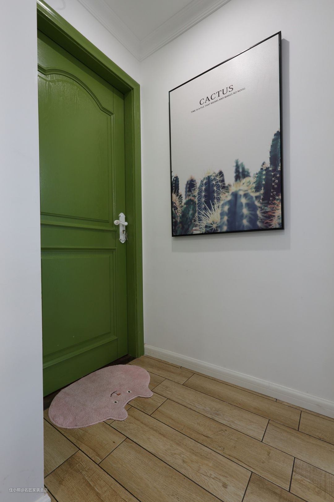 还没进门就感受到了这家设计的独特性,绿色的大门非常特别,既有复古摩登的的质感,又有清新的森林气息。门口的小猪门垫充满可爱童趣。
