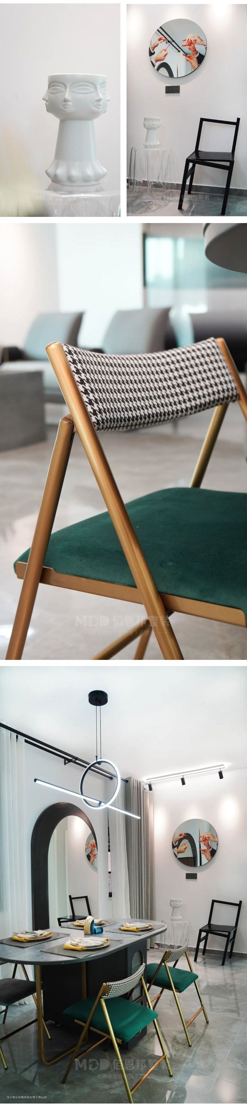结合自身在家开灶的频率比较少 餐厅这边陈小姐没有选购固定的餐桌 而是选择了这种可折叠式的 闲置时直接收纳起来变身家的装饰品 这面镜子是陈小姐特别满意的地方 在这样的小户型里 它完美地将视觉空间延伸 门状造型如通往时光隧道之门 打开它是另一个新鲜的世界 当然,最最最实用的是 当个落地全身镜也不错