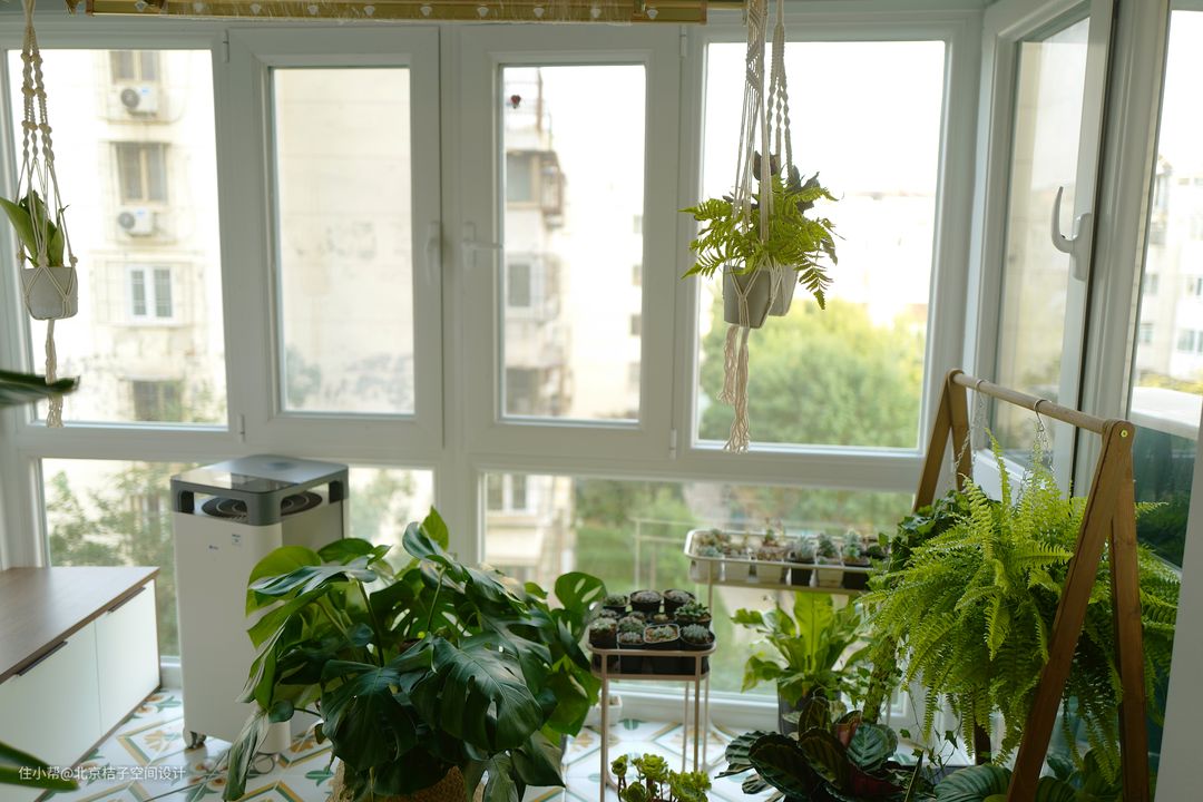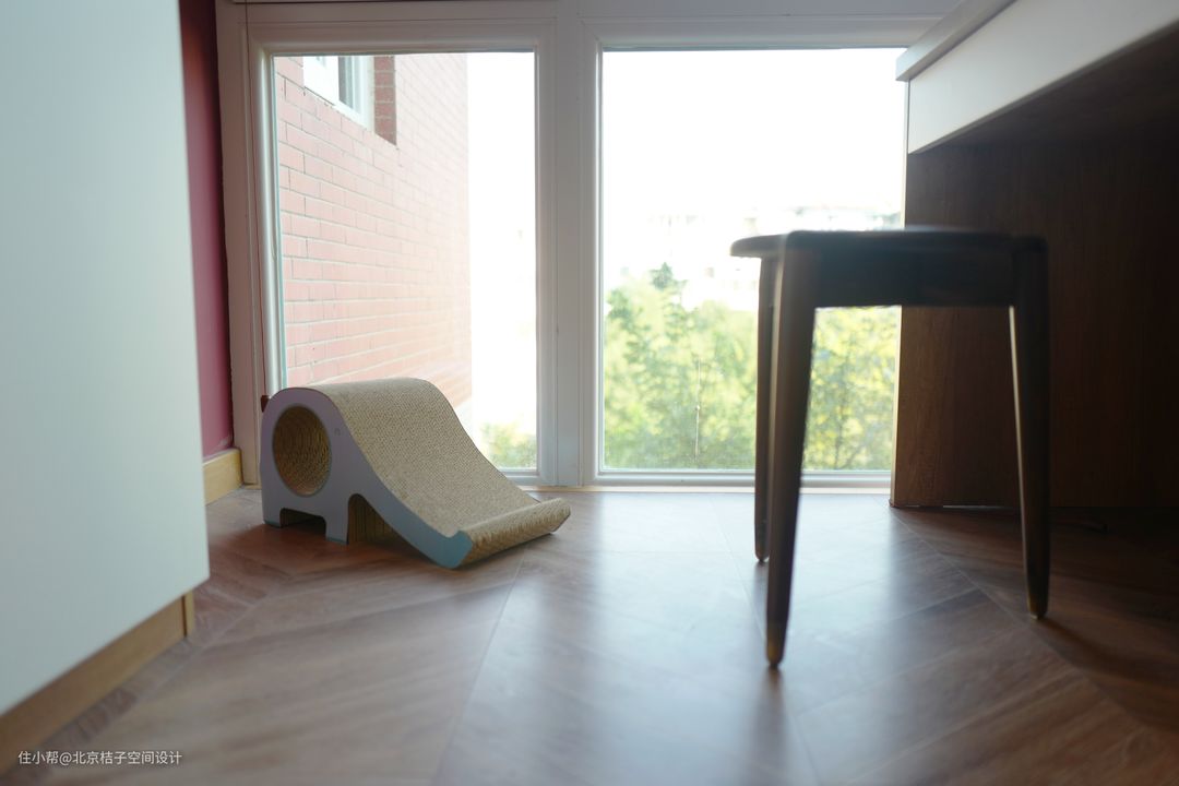 走到这个地方就是主卧的阳台啦,主卧阳台阔出去了一块儿,之前在梁个位置,只能做单人写字桌,阔出去的阳台比之前宽敞了许多,所以自然也可以容得下两个人办公了