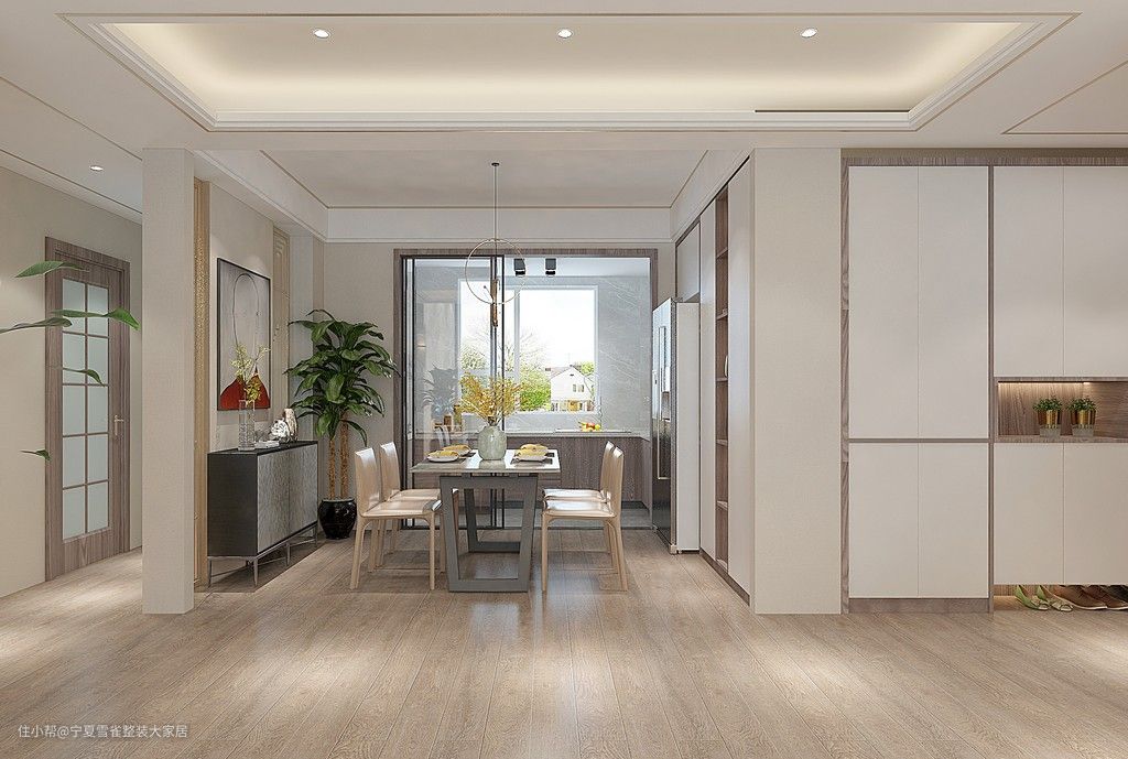 客厅和厨房光线的融入,让餐厅区域的视觉光线更加明亮,一大盆绿植的加入,使用餐氛围更加舒适惬意。