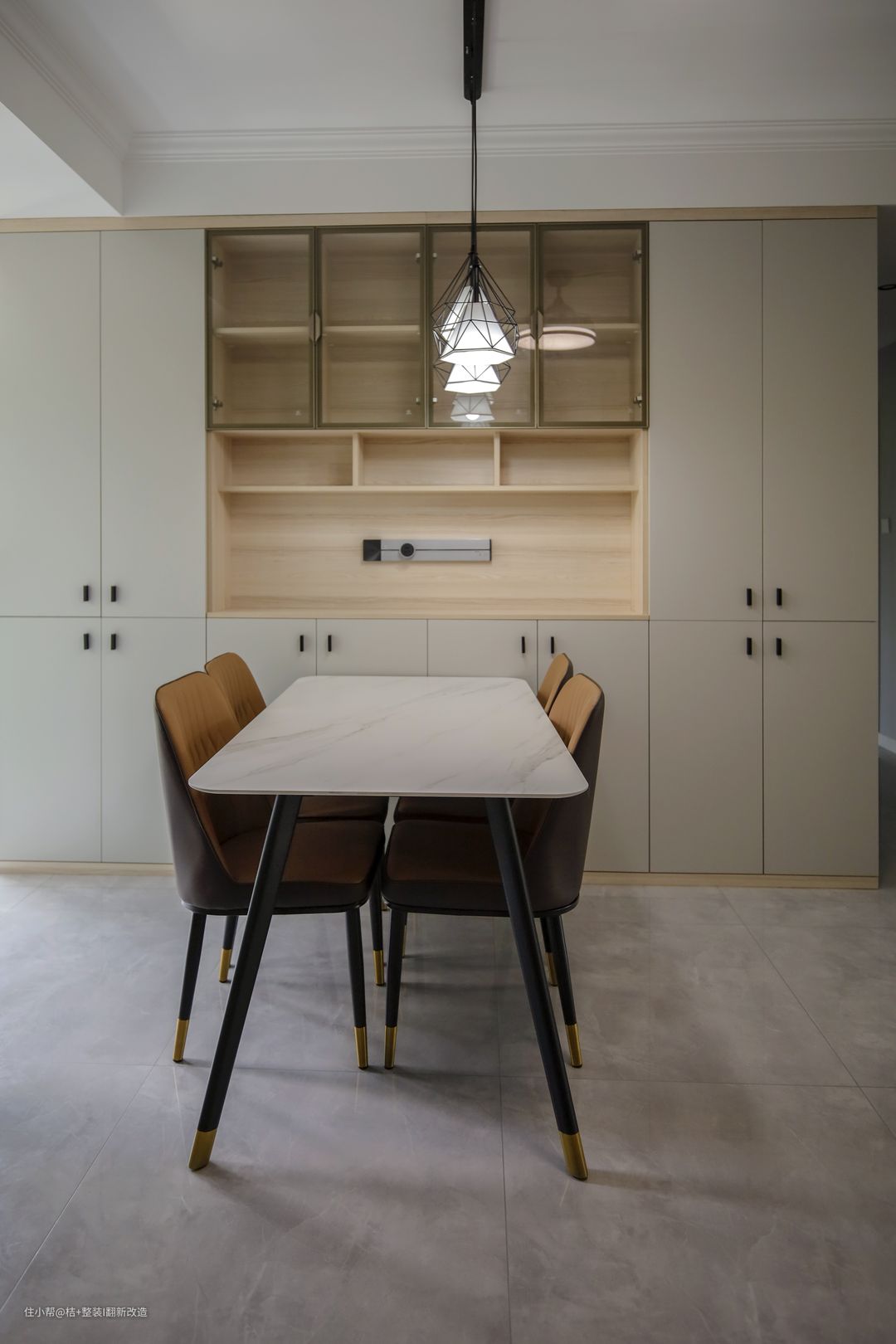 开放式柜格中设计轨道插座,使用很灵活方便,冬天在这里,安排上热气腾腾的火锅,美味与家的温馨兼得~~