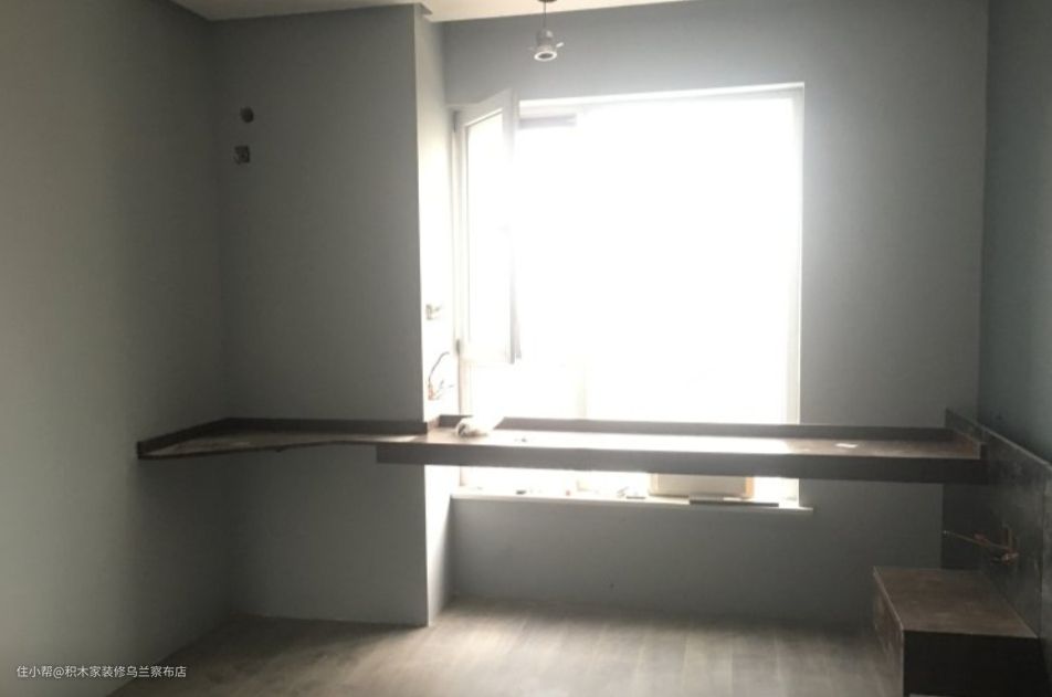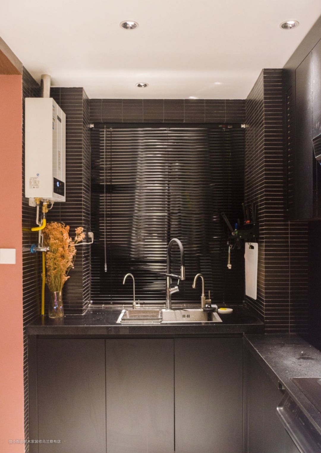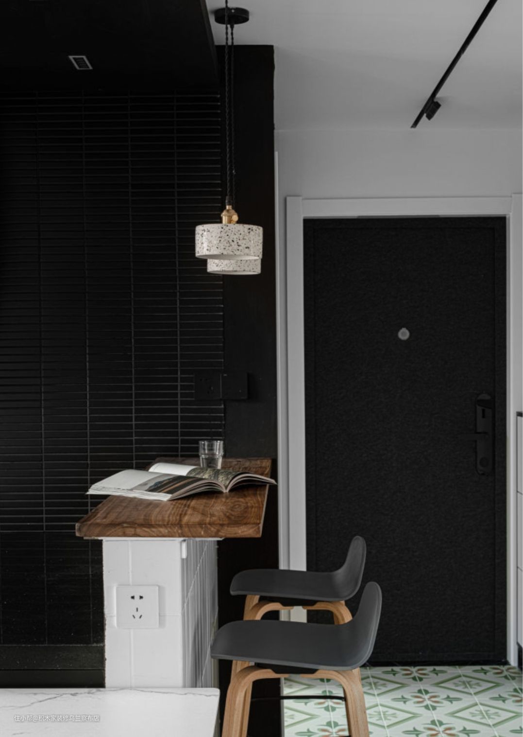 改动了格局,将原玄关墙整面拆除,重新砌了半墙吧台,打通厨房与餐厅的墙面后,整个空间通透了,并且增加了采光。经典的L型橱柜,在拆掉墙面之后,显得空间更加宽敞。吧台用白色长条砖进行包裹,台面选择胡桃木。吧台侧面预留了插座,吃火锅充电都非常方便。