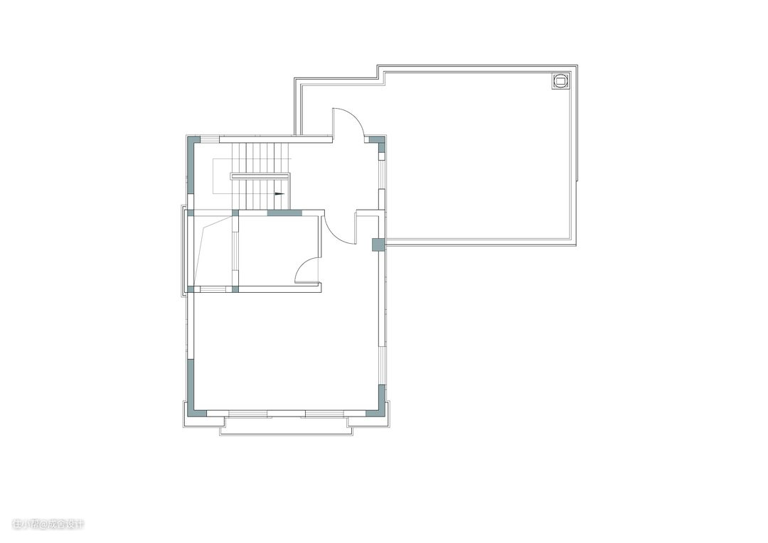 2F原始平面图: ▪ 除了卧室的空间,其余空间都偏小,而业主想要一个书房,能够自己学习的空间。 ▪ 二楼只有一个卫生间,但却和卧室是处于同一空间,需要与卧室分离开来。 ▪ 卫生间空间太小,业主需要有单独泡澡的空间。