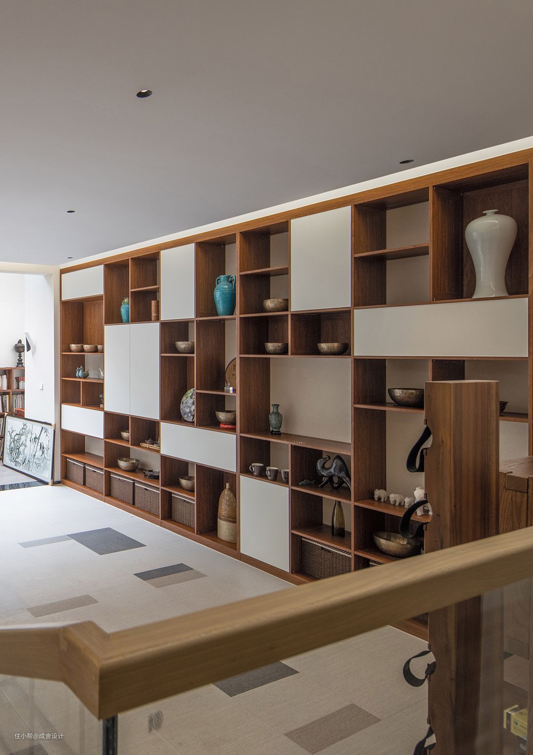 展示柜以白色为装饰,美观的同时也与地毯色块呼应,营造了一个高级的空间质感。生活的仪式感,便从此刻开始。