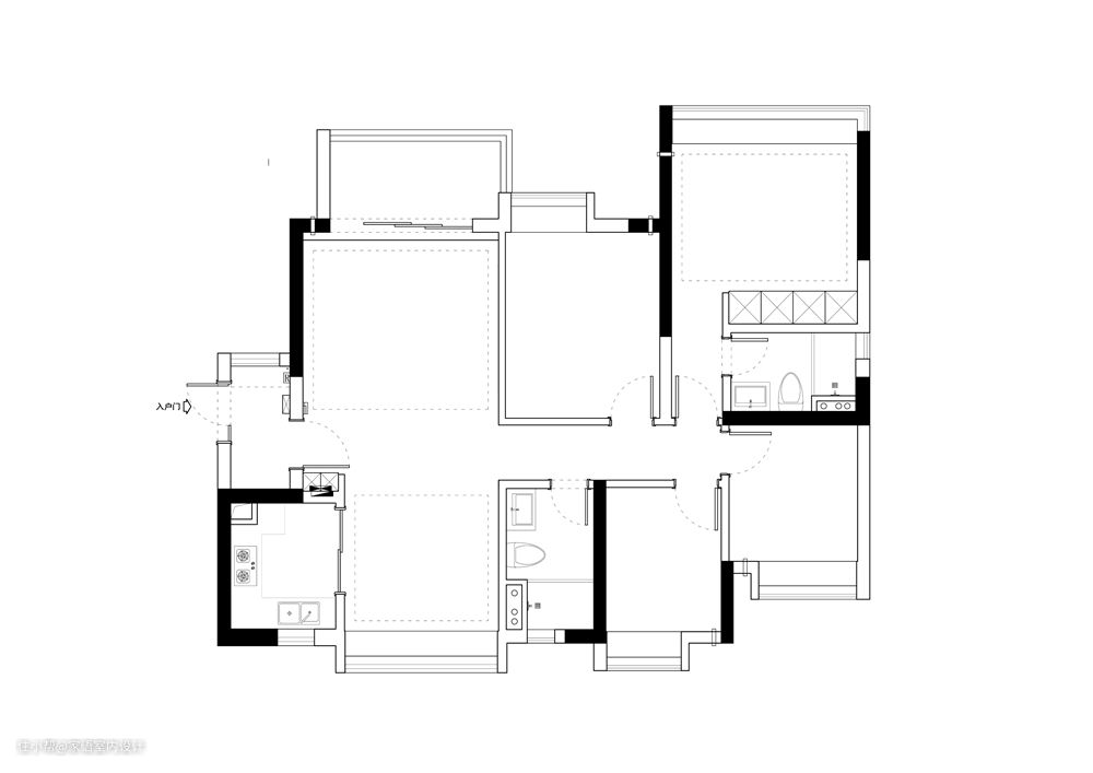 本案是一个124㎡的简约风私宅,平常基本只有小两口居住。设计师打破传统空间定式,帮业主打造了集居家办公、运动健身、休闲小憩于一身的综合空间,重新定义家的概念,实现高品质、有仪式感的生活方式。 设计师还创造性地在「卧室-运动室-次卧」内部,规划了一条自由穿梭的洄游动线,空间与空间既相互独立,又能连通在一起,让家变得超好玩!无论大小朋友来到这个家,都喜欢在这里躲猫猫~ (以下为业主撰写的真实入住感受!) 户型改造 — 我们家原本是四室两卫的精装房,因此遗憾地和X说过: 「我喜欢隐私空间小,公共空间大的平层,觉得下一套会买那样的房子」 给设计师的需求里,并没有提到要改精装房格局,但第一次见面沟通,设计师把非承重墙都打拆重新布局,呈现出的,正是我本以为十年后才能拥有的家。 当我还在犹豫的时候。X说: 「这不就是你想要的吗,不用等十年,你现在就可以拥有」