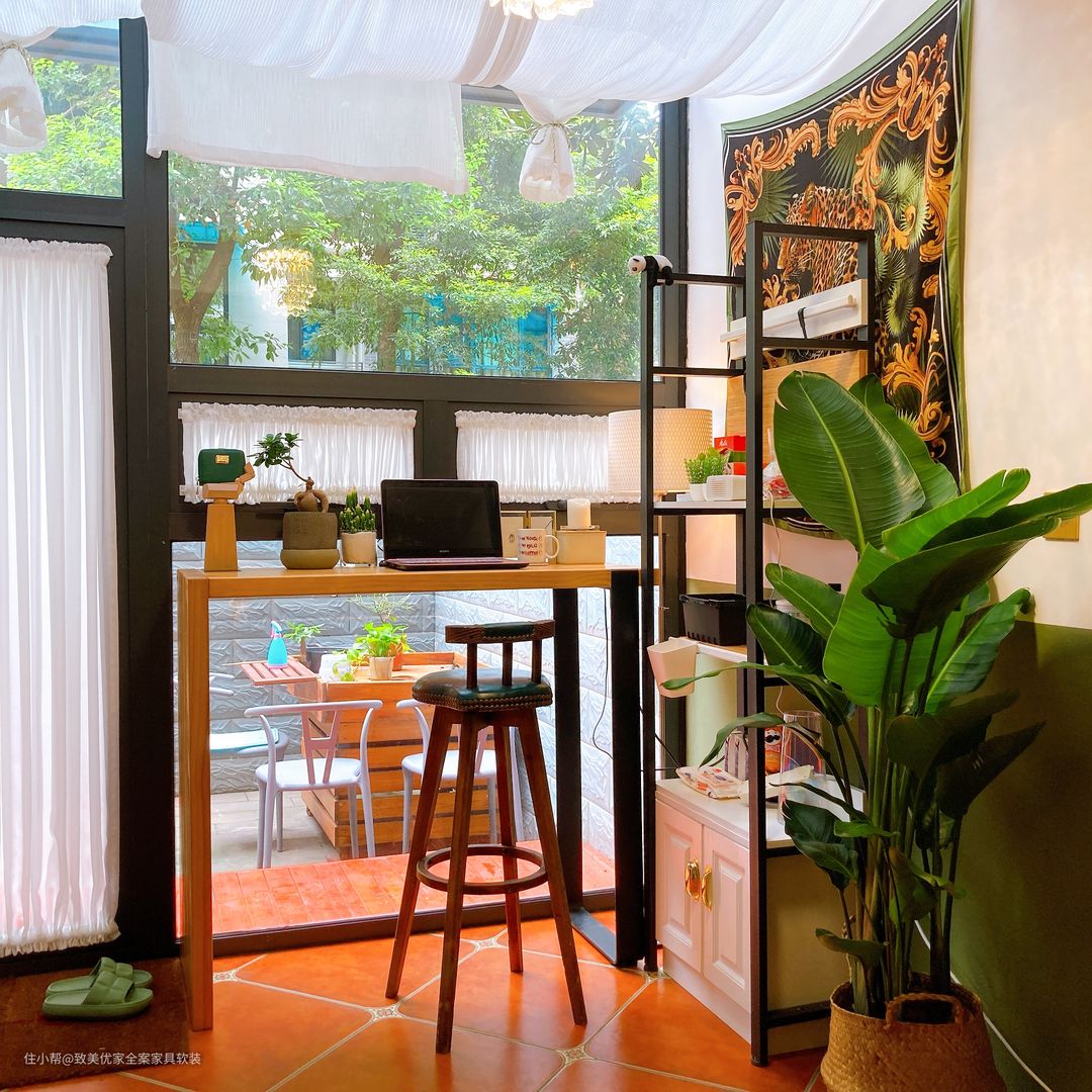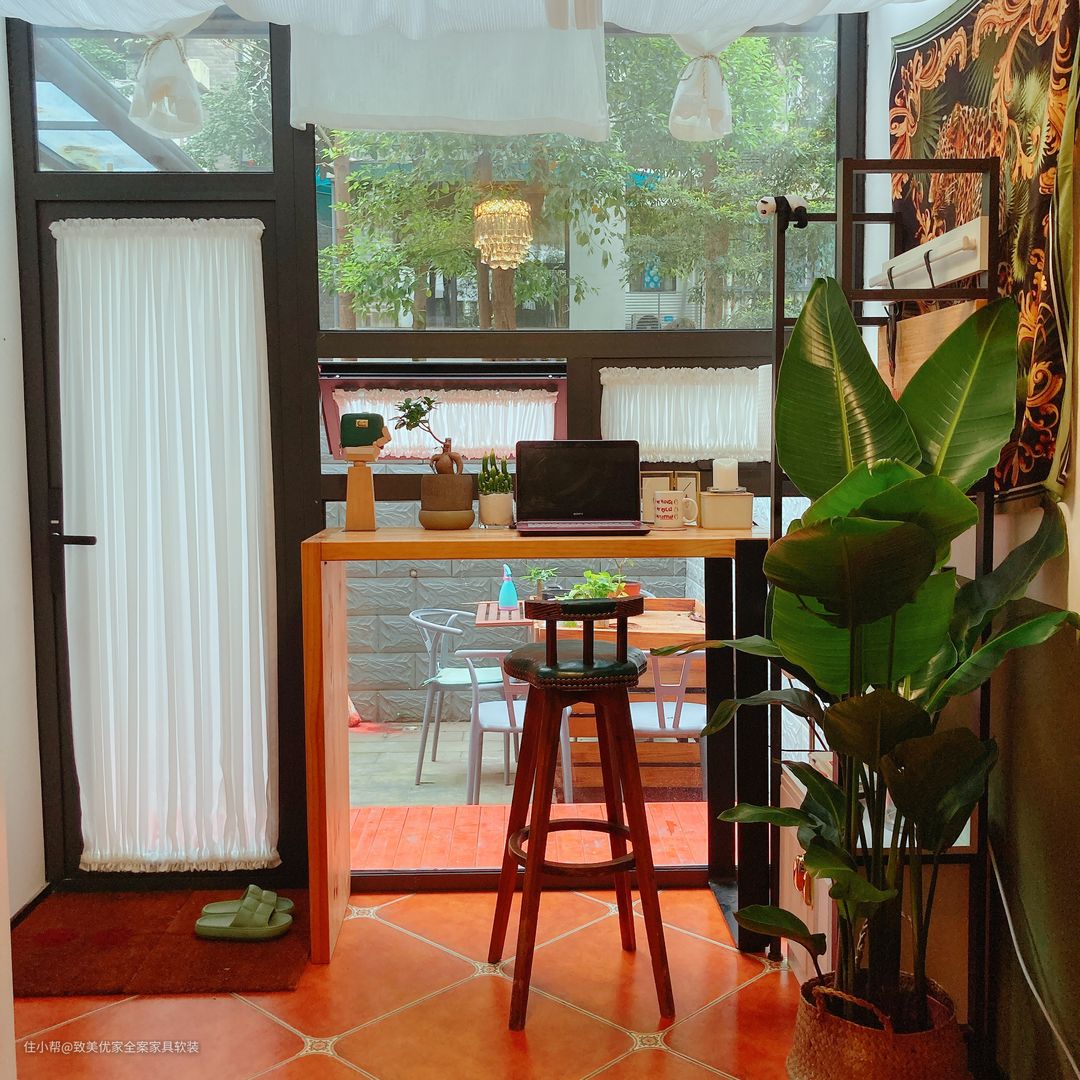 所以,吧台虽为方寸之地,但幸得五脏俱全。一桌、一椅、三俩绿植已然让其充实不已。当然,这里也是她的第二“战场”,心情好时也会在此做做手工,插插花。