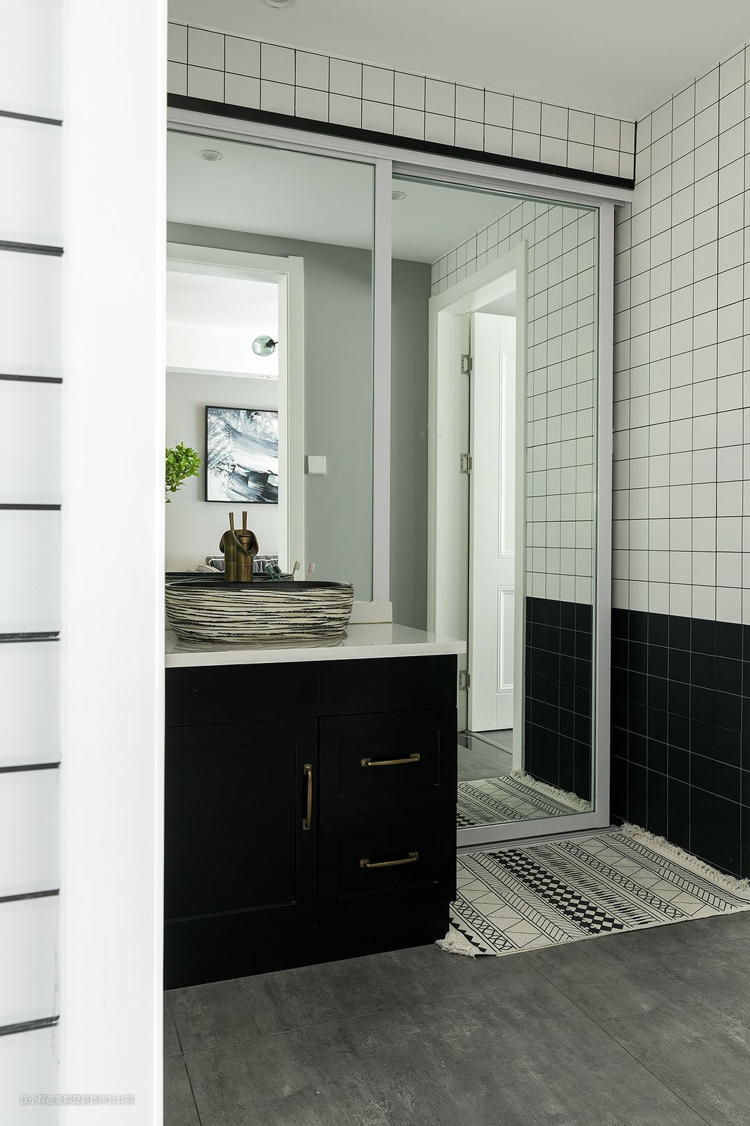 最有特色的就是卫生间,整个卫生间做了干湿分离两块区域。洗手台洗漱区域在过道上,充分利用空间。