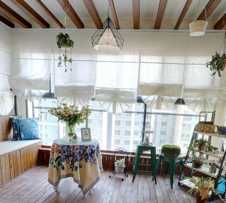 阳台采光充足,设计小茶几和卡座,摆上盆栽绿植以及花束。这无疑是一个无比舒适的休闲小天地了。在闲暇的午后,沏上一杯咖啡,尽情享受这惬意的下午茶时光,真的太棒了。