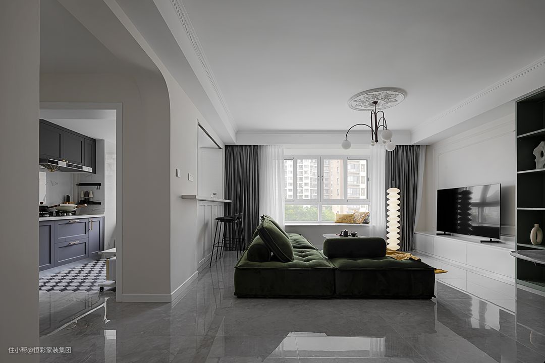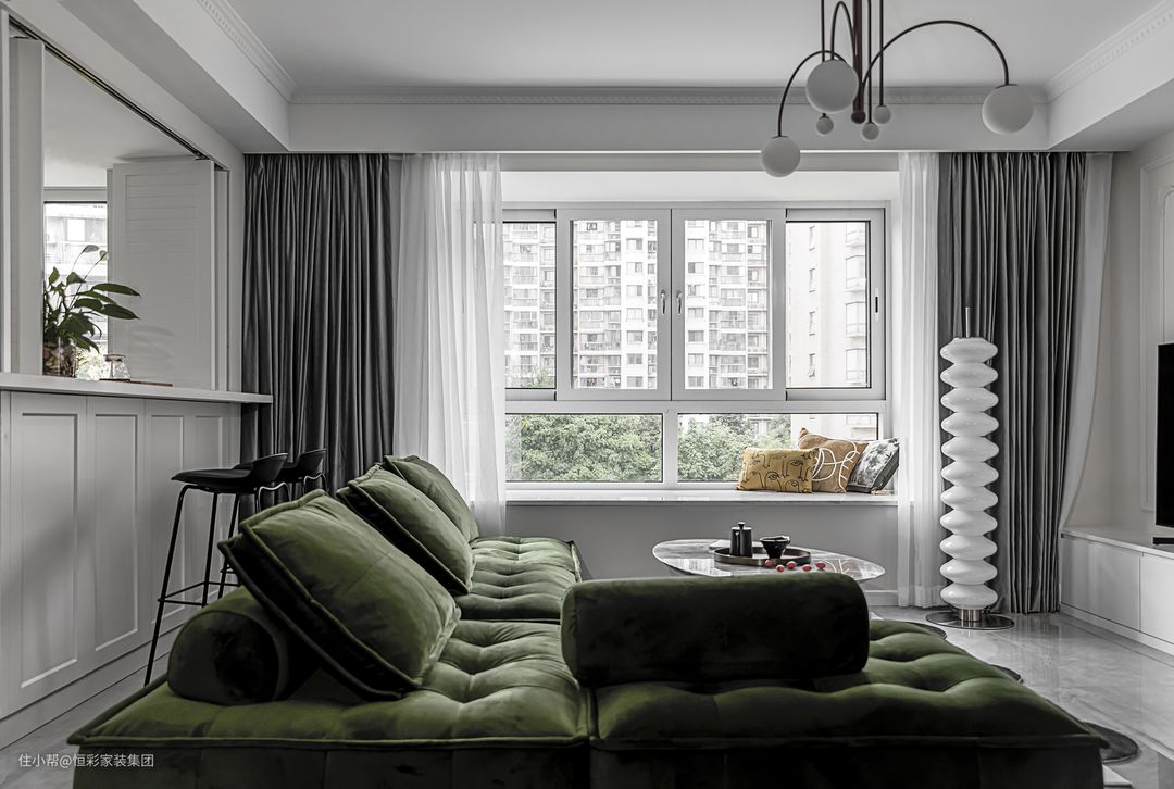 客厅完全保留了原始户型格局,通过设计师改造却有了截然不同的效果。